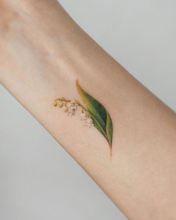- Запястье. Маленькая татуировка с ландышем добавит вашему образу утонченности.