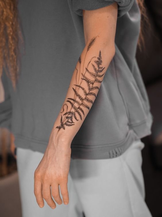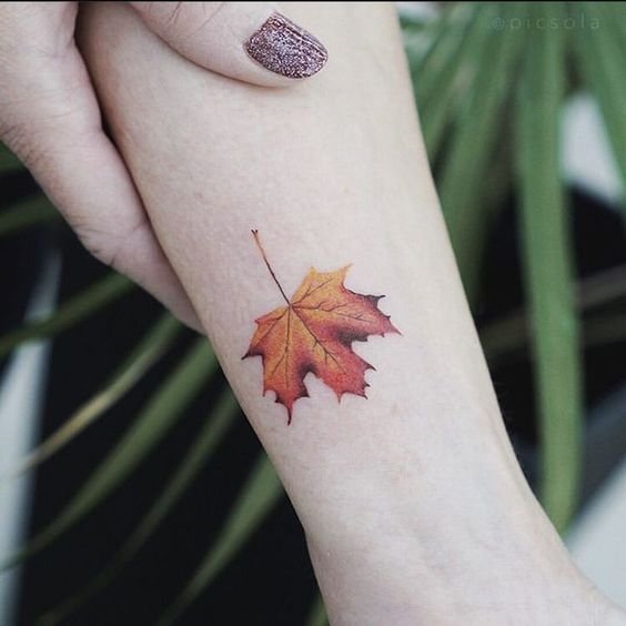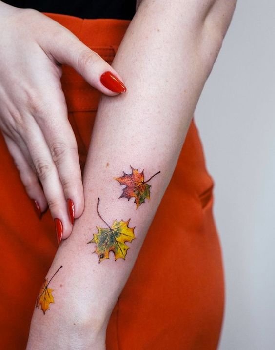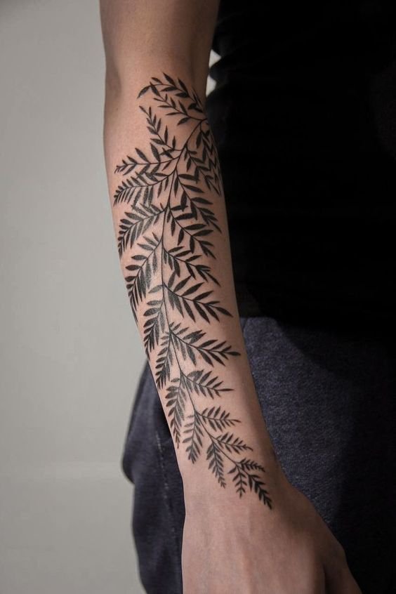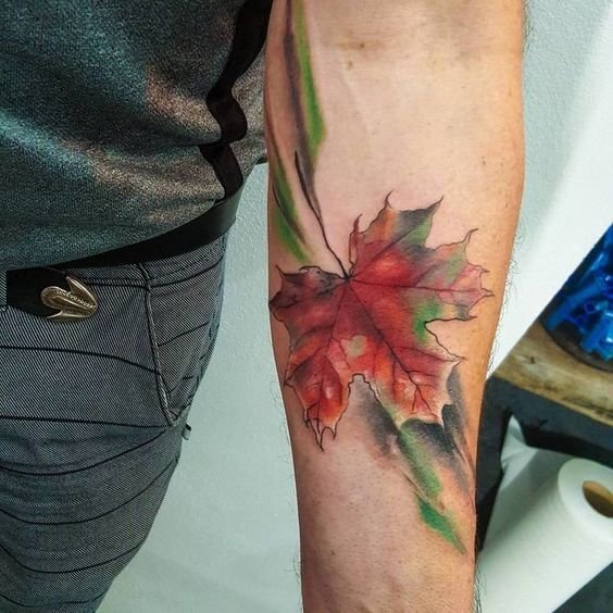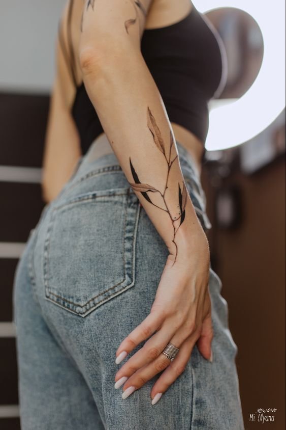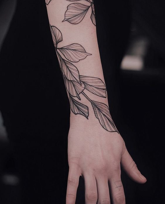 Обычно для татуировок листьев выбирают руки - это может быть небольшой рисунок на запястье, плече, в виде браслета, или же полноценный рукав.