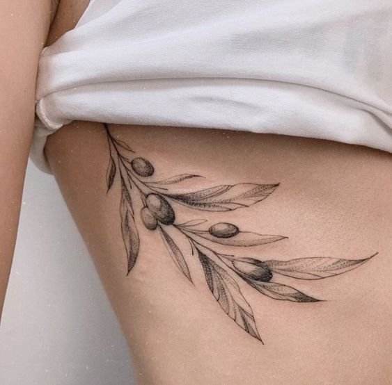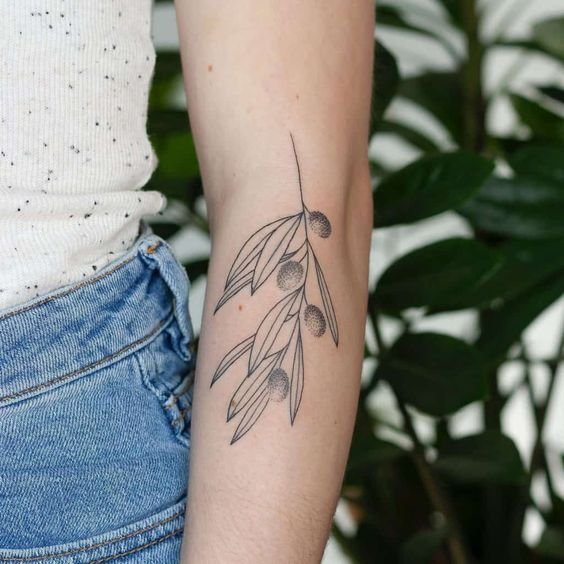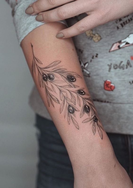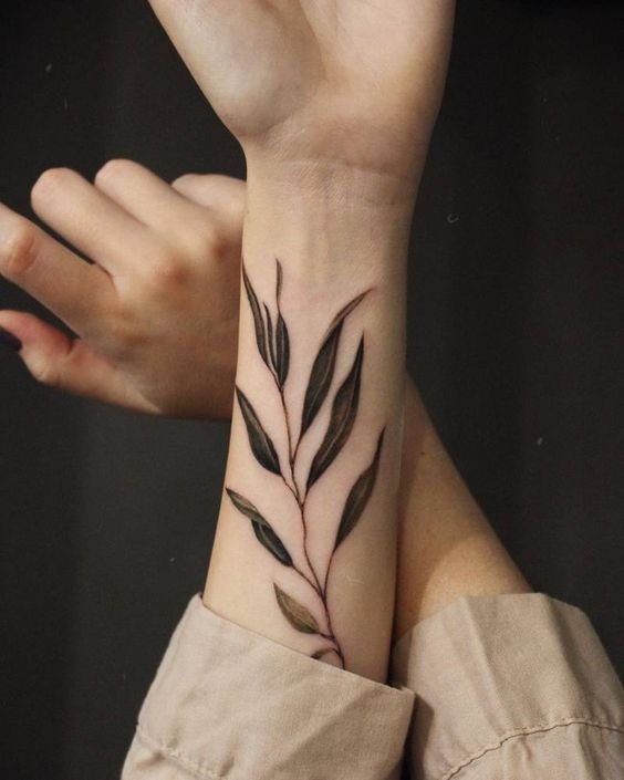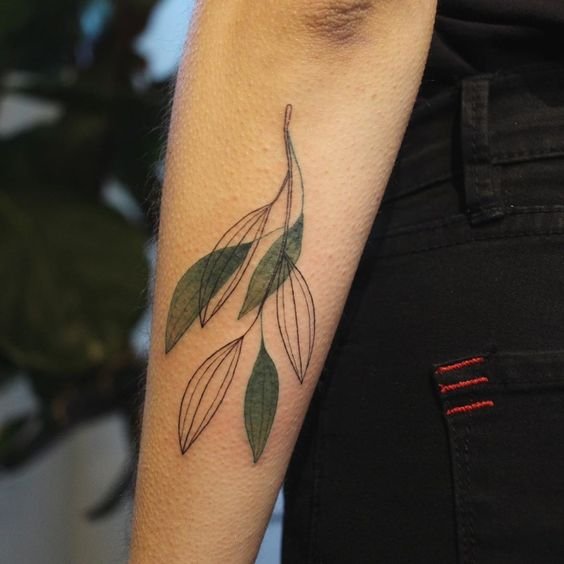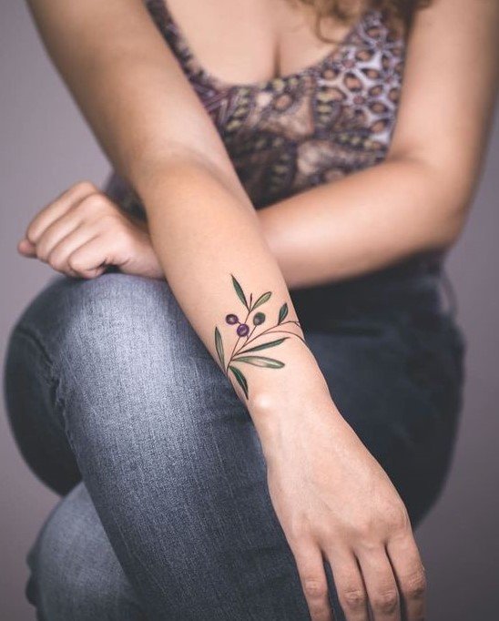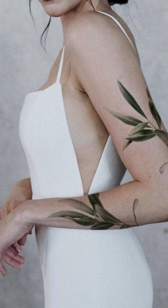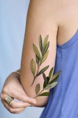 - Оливковые листья - символ победы и примирения. Часто такие татуировки делают вокруг запястья, по длине руки или ноги.