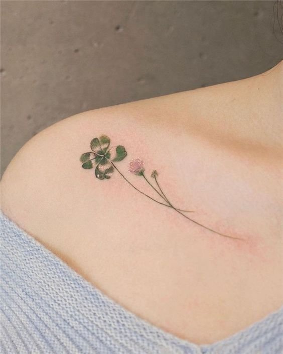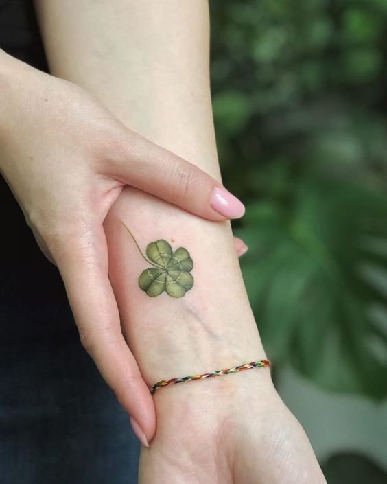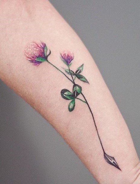 - Клевер, особенно четырехлистный символизирует удачу, гармонию и счастье. Такие татуировки делают люди, которые хотят привлечь в свою жизнь фортуну.