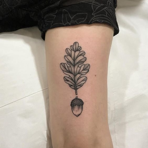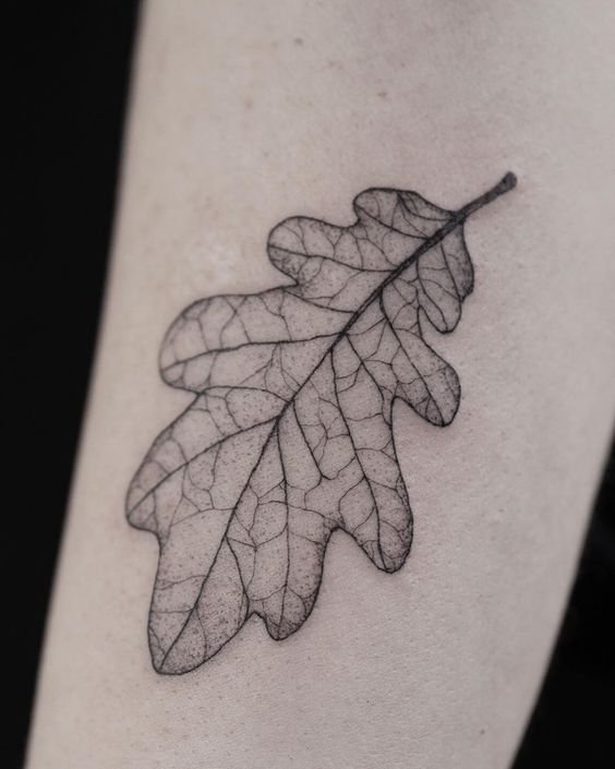 - Дуб - для украинцев это символ силы, прочности и непоколебимости, а татуировка с его листьями означает силу воли, непоколебимость духа, мужество и храбрость. Мужчины часто выбирают сложные композиции, частью из которых являются именно дубовые листья.