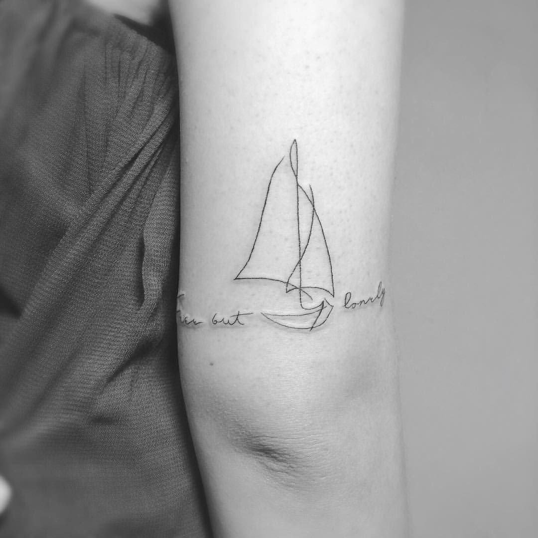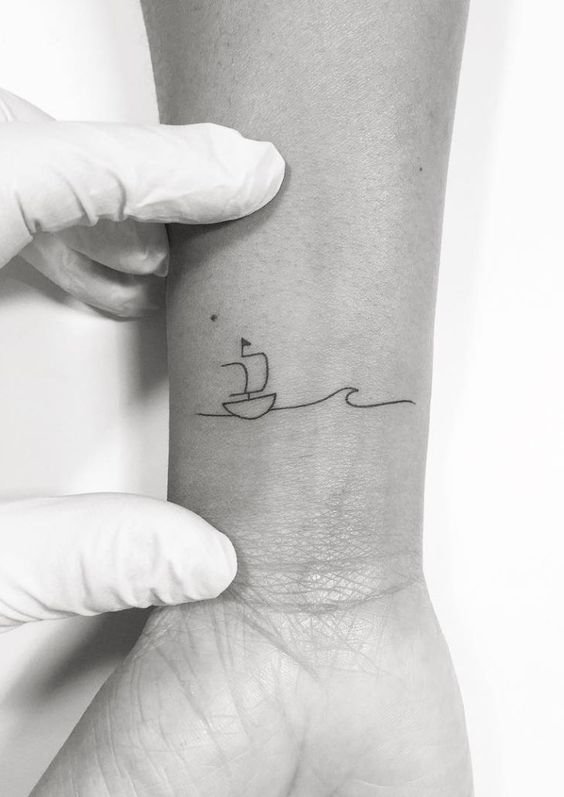 То есть поместить эскиз лодка можно на плечевой зоне, предплечье, вплоть до кисти. Что касается ноги, то тут можно будет использовать зону до щиколотки, бедро или голень. Небольшие лодки наносят в виде тату на пальцы, работа получается простая и ненавязчивая, но интересно в ней будет именно размещение.