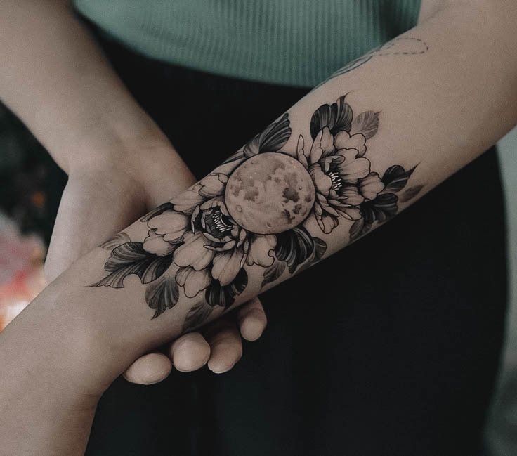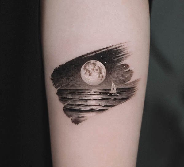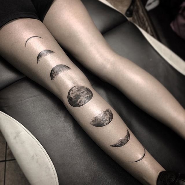 Существует множество вариантов татуировок с изображением луны.