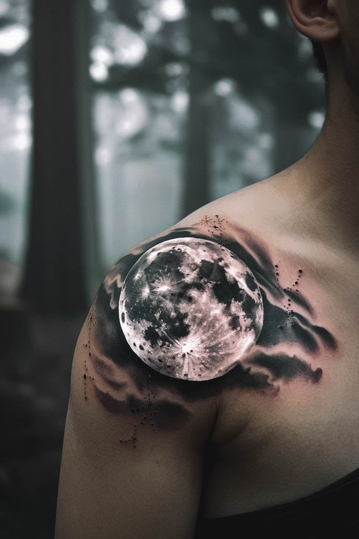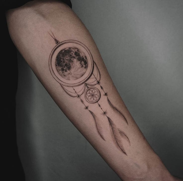 Луна — один из самых мистических символов, который часто выбирают для татуировки.