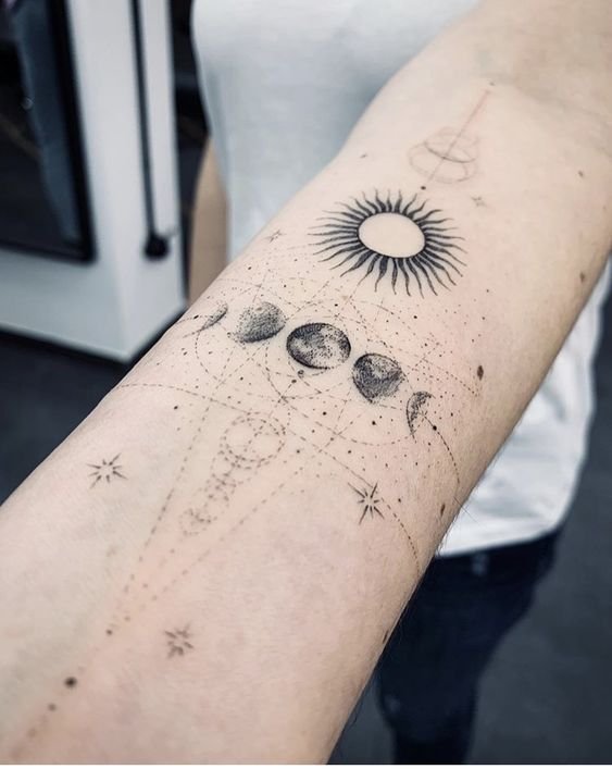 Фазы спутницы Земли играют важную роль в интерпретации боди-арта. Молодая луна символизирует новые начинания, растущая — развитие, а убывающая — завершение цикла. А полная часто несёт в себе значение интуиции и обостренного восприятие окружающего мира. Такой рисунок подходит людям, которые стремятся к внутреннему равновесию и духовному поиску.