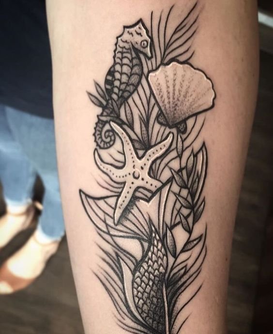 Среди множества разнообразных тату-эскизов, особой популярностью пользуются эскизы морской тематики.
