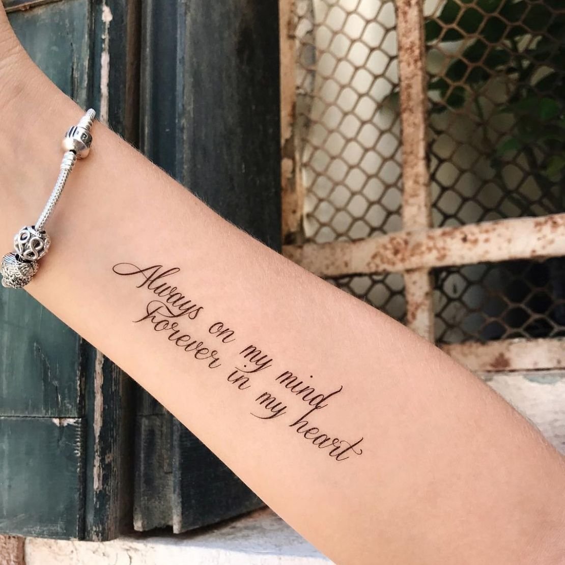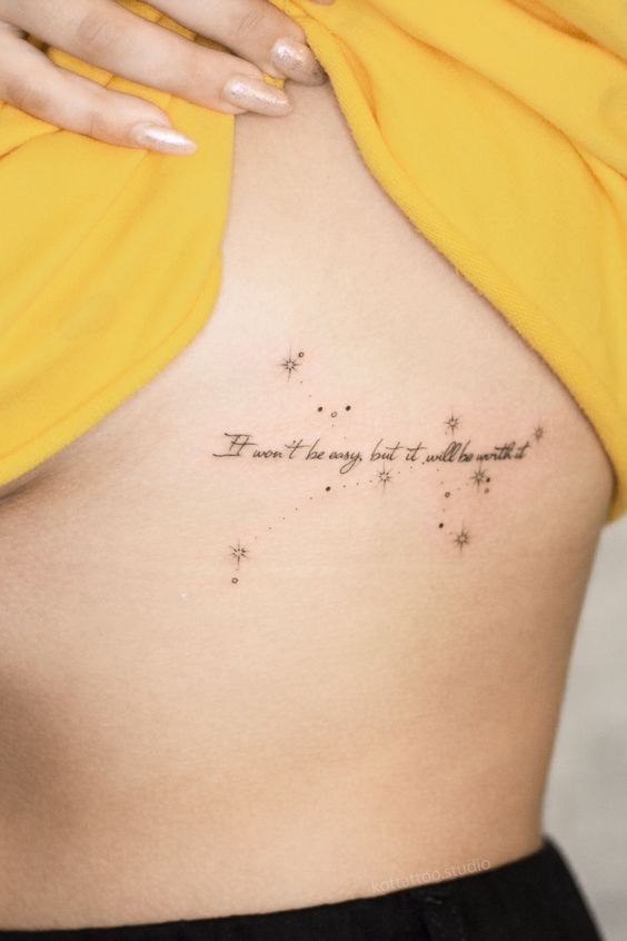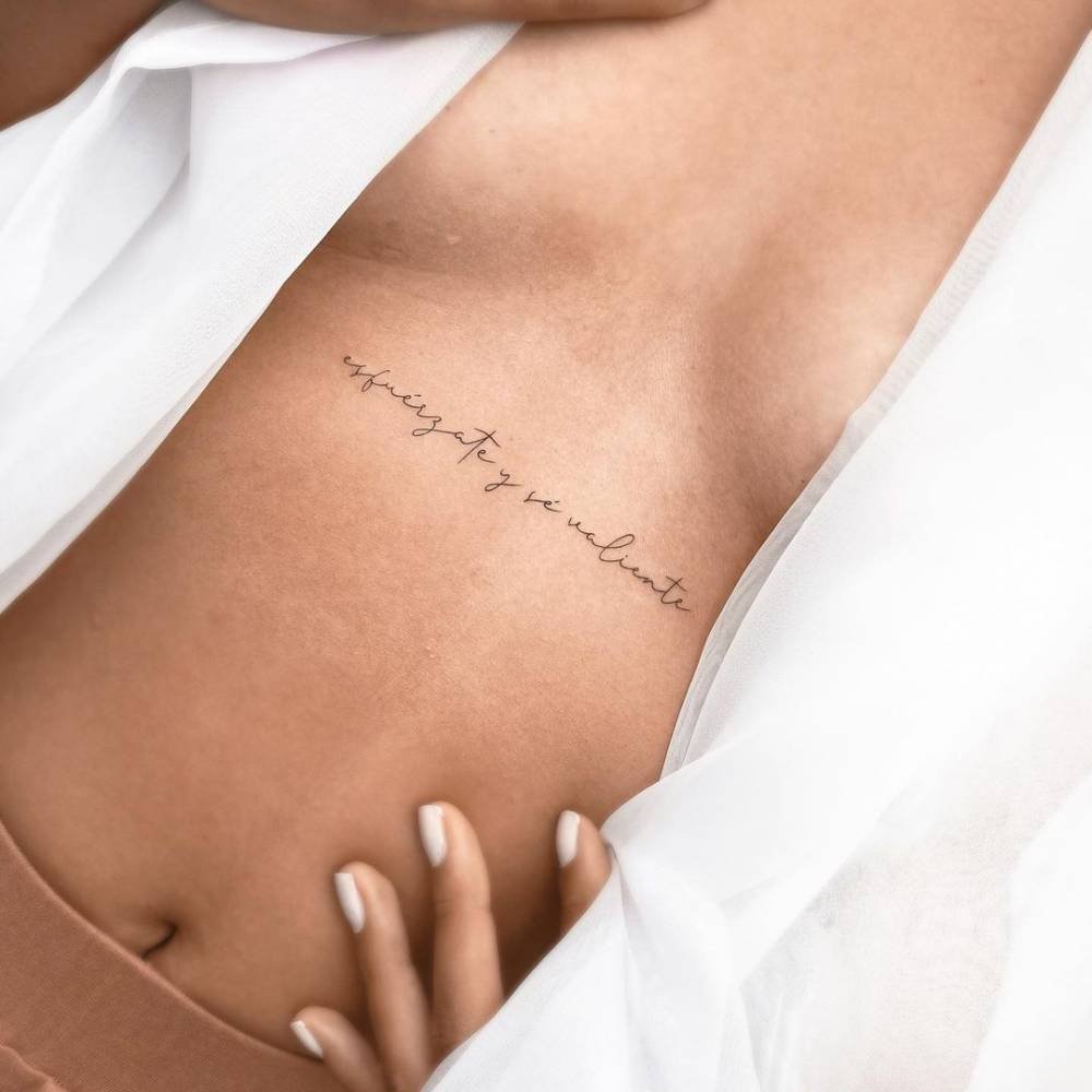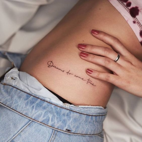Часто для тату выбираются любимые цитаты из книги, песни, или кинолент. Как правило, выбранная цитата несет в себе особое значение для человека, таким образом на теле увековечивается не только фраза, но и ощущаемые в тот момент эмоции человека.