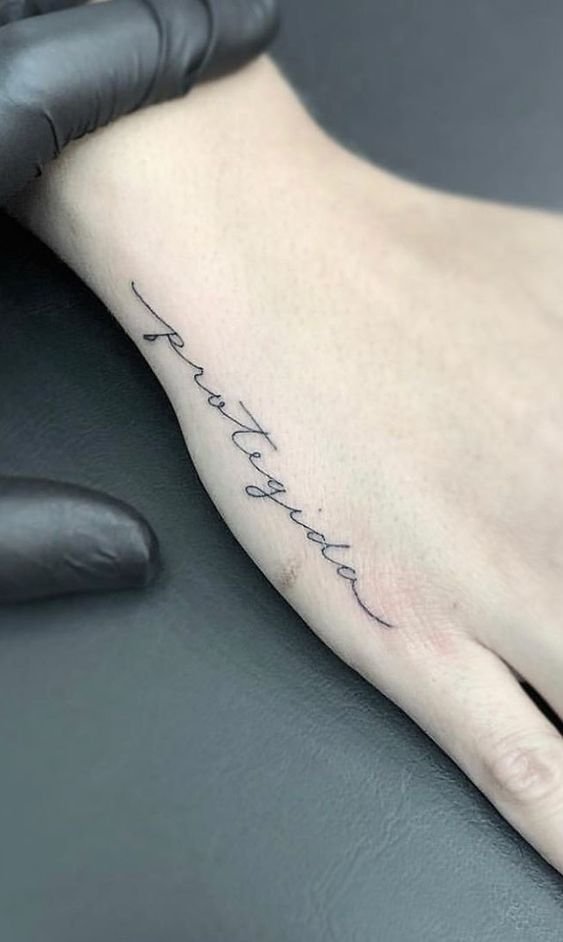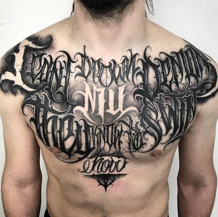 Среди тату-эскизов надписей, очень популярными являются фразы на латыни, китайские иероглифы, на английском или арабском языке. Широкий спрос таких надписей объясняется эстетичной стороной, ведь на иностранном языке, с грамотно подобранным шрифтом, тату выглядит очень эффектно.