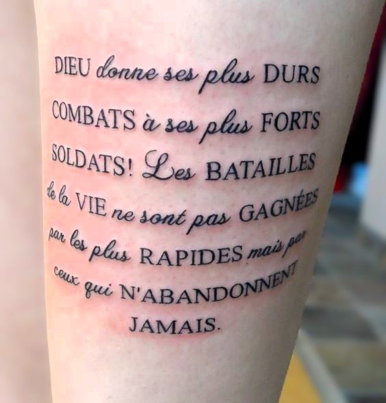 - Французский: N’abandonne jamais — элегантность французского добавляет фразе шарма и утончённости.