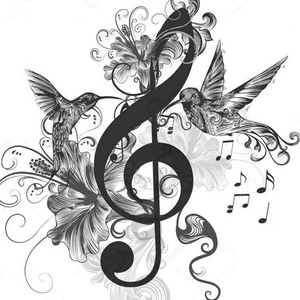 Эскизов с изображением нот существует несколько вариантов: