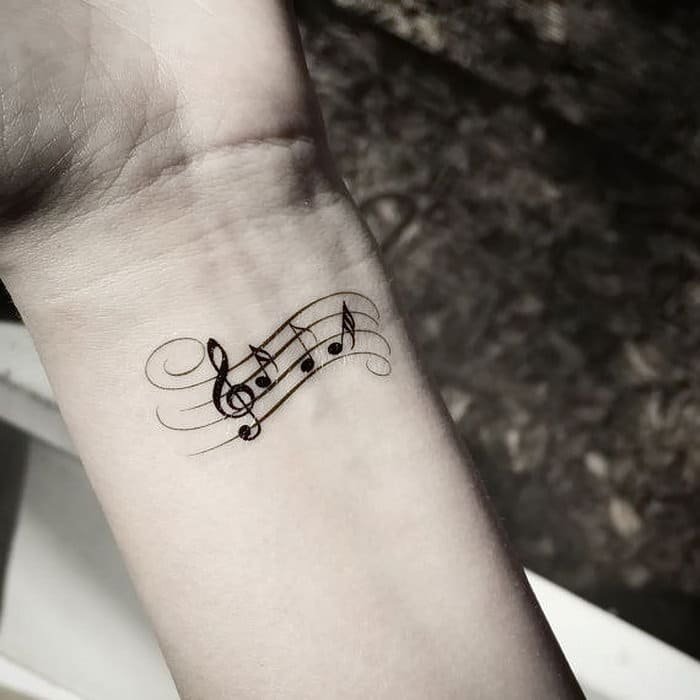 Тату нот, как правило, выбирают люди, чья жизнь связана с музыкой. Данное изображение пользуется широким спросом среди женщин и среди мужчин. Обычно ноты выполняют в небольшом размере, поэтому таким рисунком можно украсить абсолютно любой участок тела. Выполняется тату в черном цвете, но стоит заметить что ограничений нет, поэтому Вы можете подобрать для себя любой оттенок цвета с палитры пигментов.