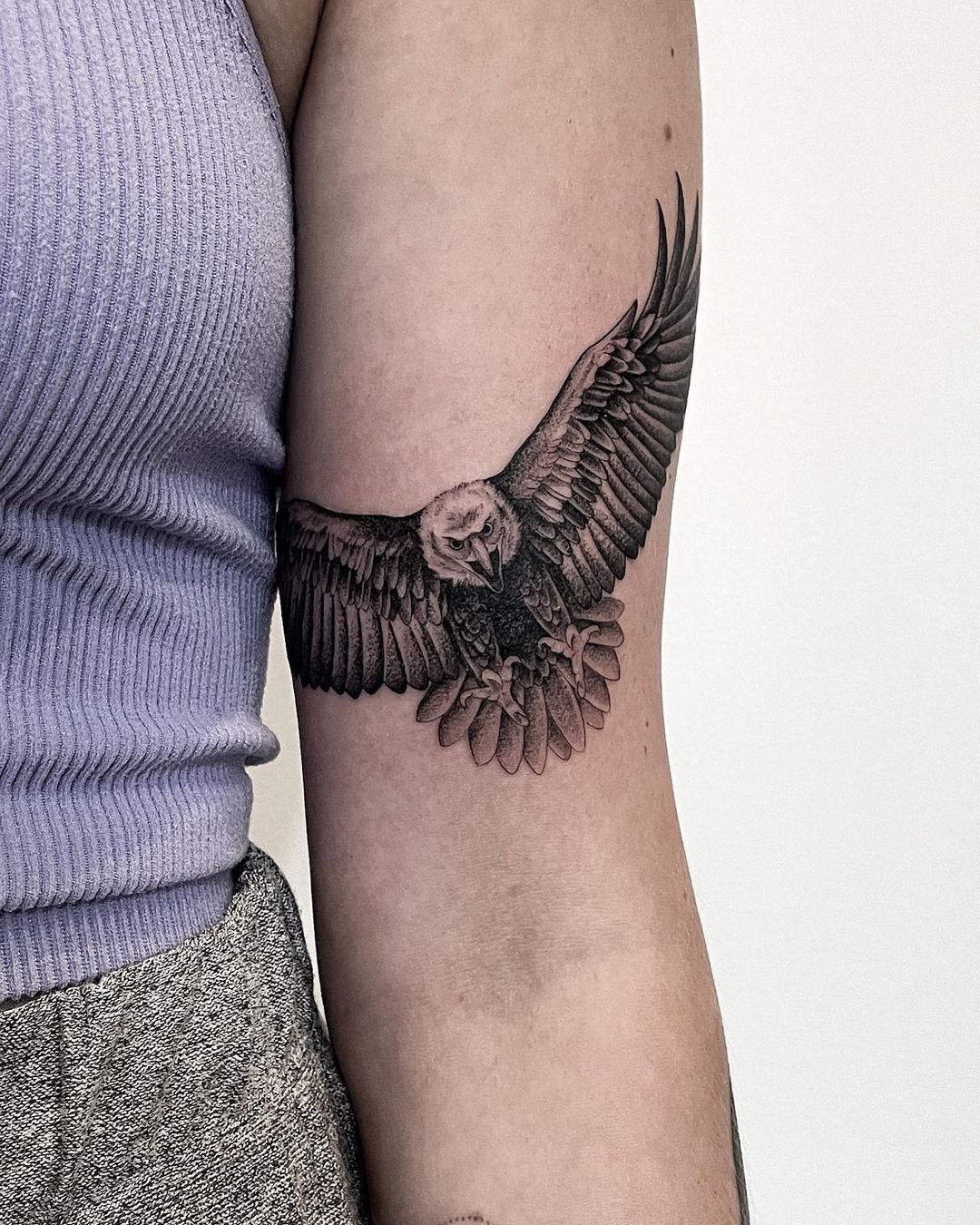 Орёл может стать мощным заявлением или личным оберегом, в зависимости от зоны нанесения.