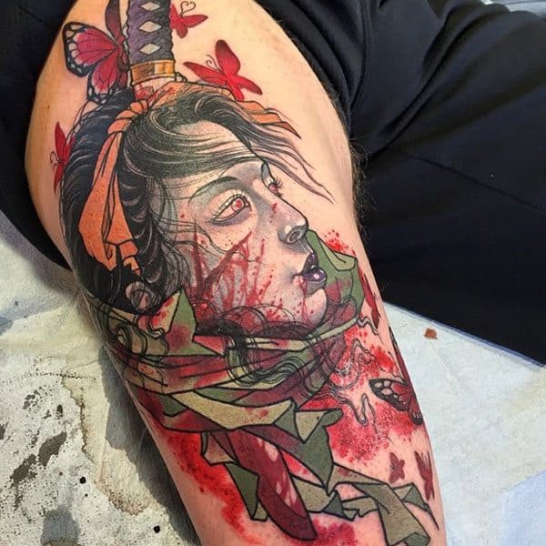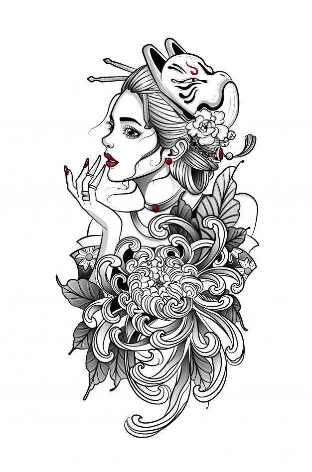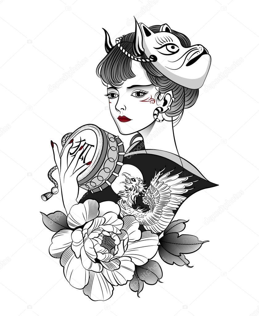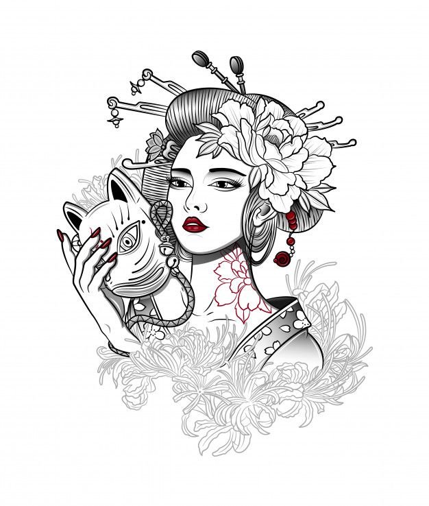 - Другой классикой жанра является татуировка с изображением гейши. Гейши давно стали символом Японии и символизируют собой хрупкость, изящество, грациозность, красоту и мастерство. Татуировки с рисунками гейш набивают себе чаще всего девушки, которые стремятся походить на этих легких красавиц Востока.