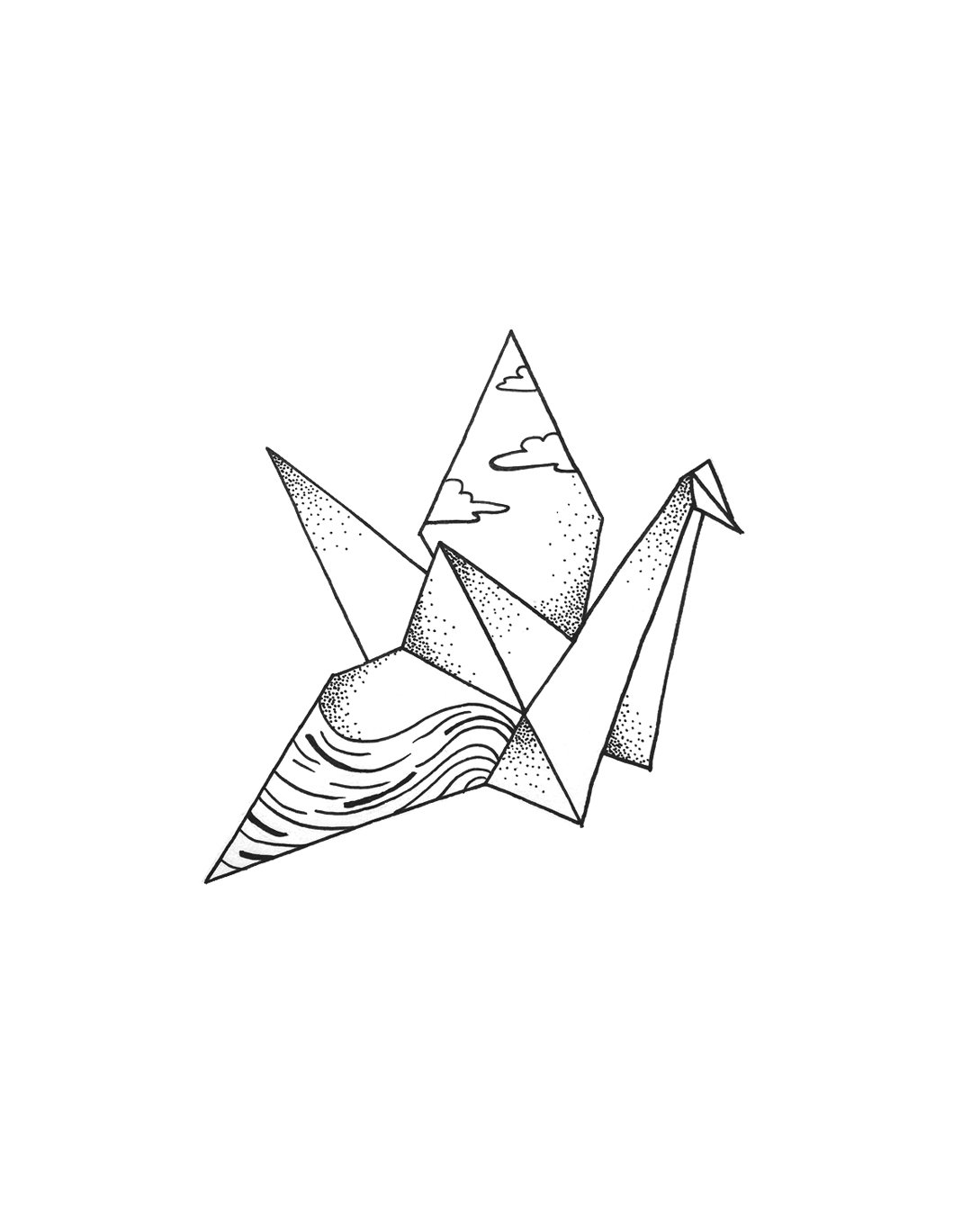 - Рисунок журавля - тату с изображением бумажного журавля говорит что его обладатель жизнелюбивый и жизнерадостный человек, всегда готов предоставить помощь, добродушный и мудрый человек;