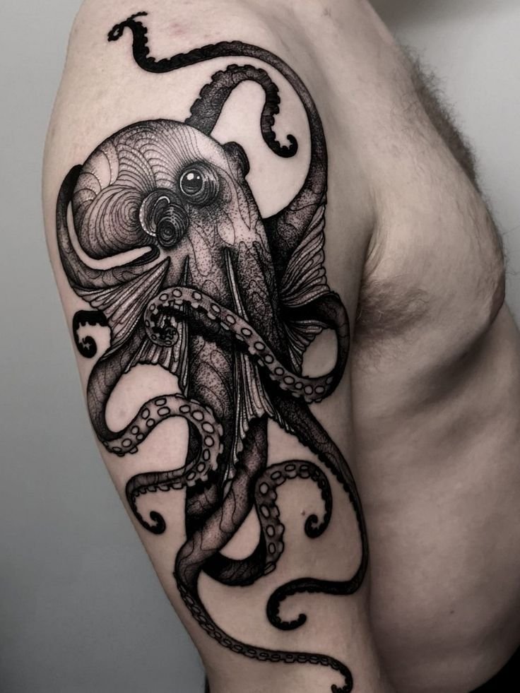 В древнегреческих легендах этот моллюск символизировал морскую стихию и навык выживать в самых сложных условиях. В японской культуре его связывают с трансформацией и защитой. А в тату-культуре это изображение часто становится знаком мистицизма, глубины и умения избегать опасности.