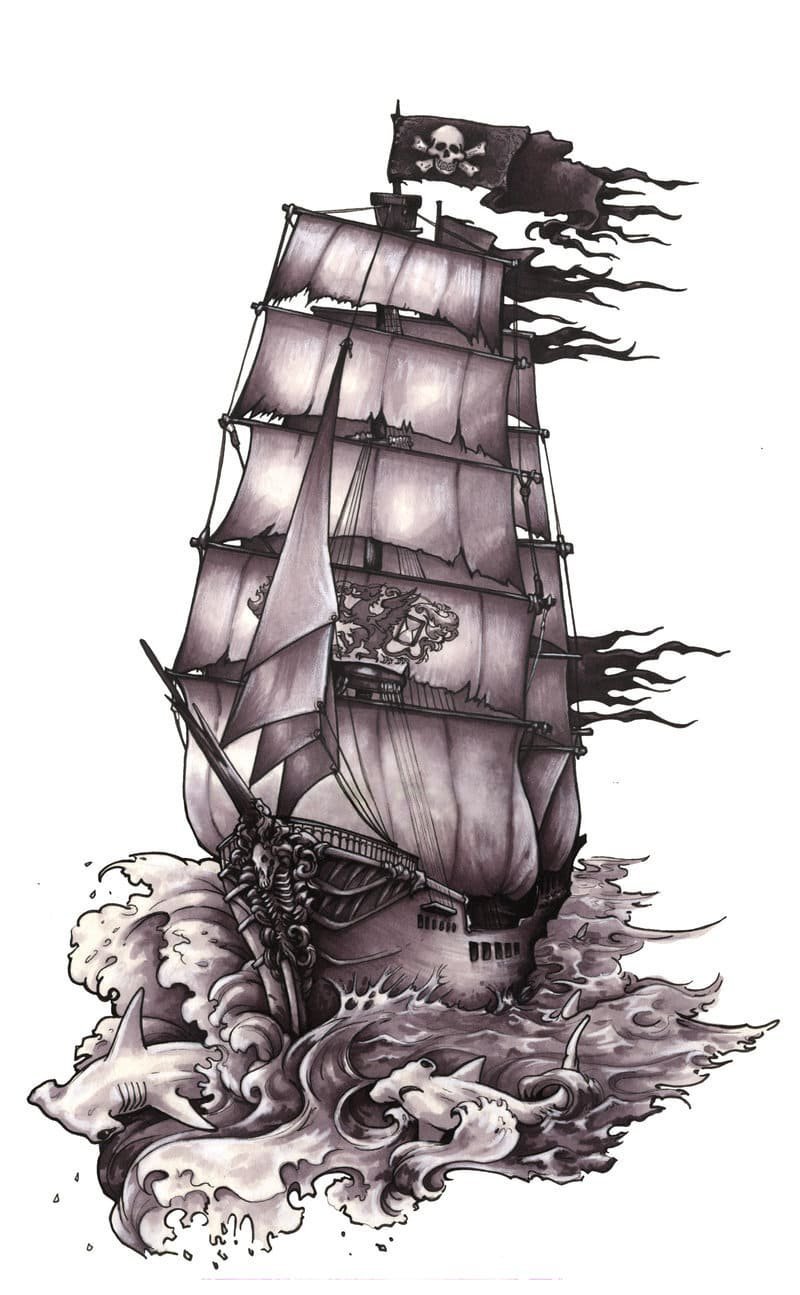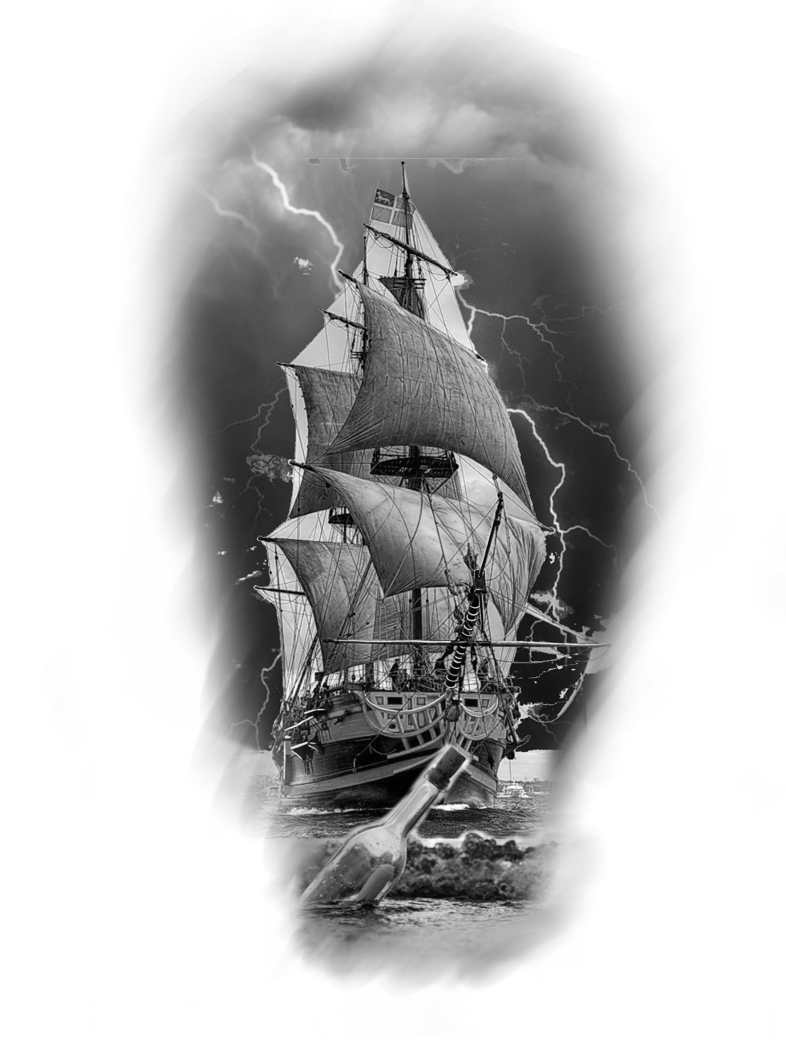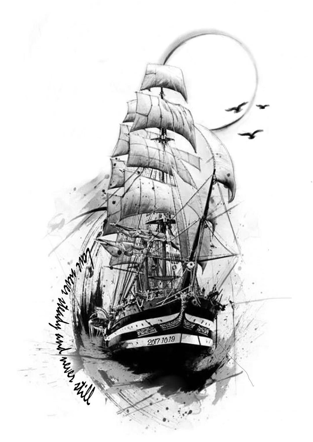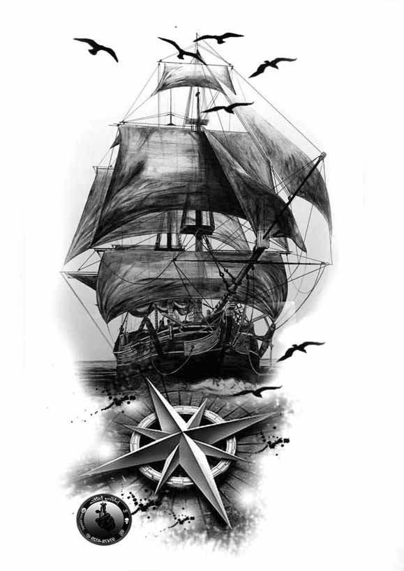 Тату эскиз парусника, корабля, часто выбирают для тату и представительницы прекрасной половины.