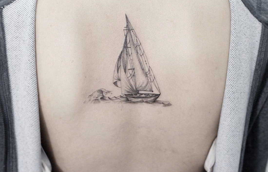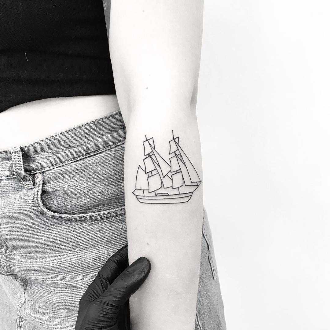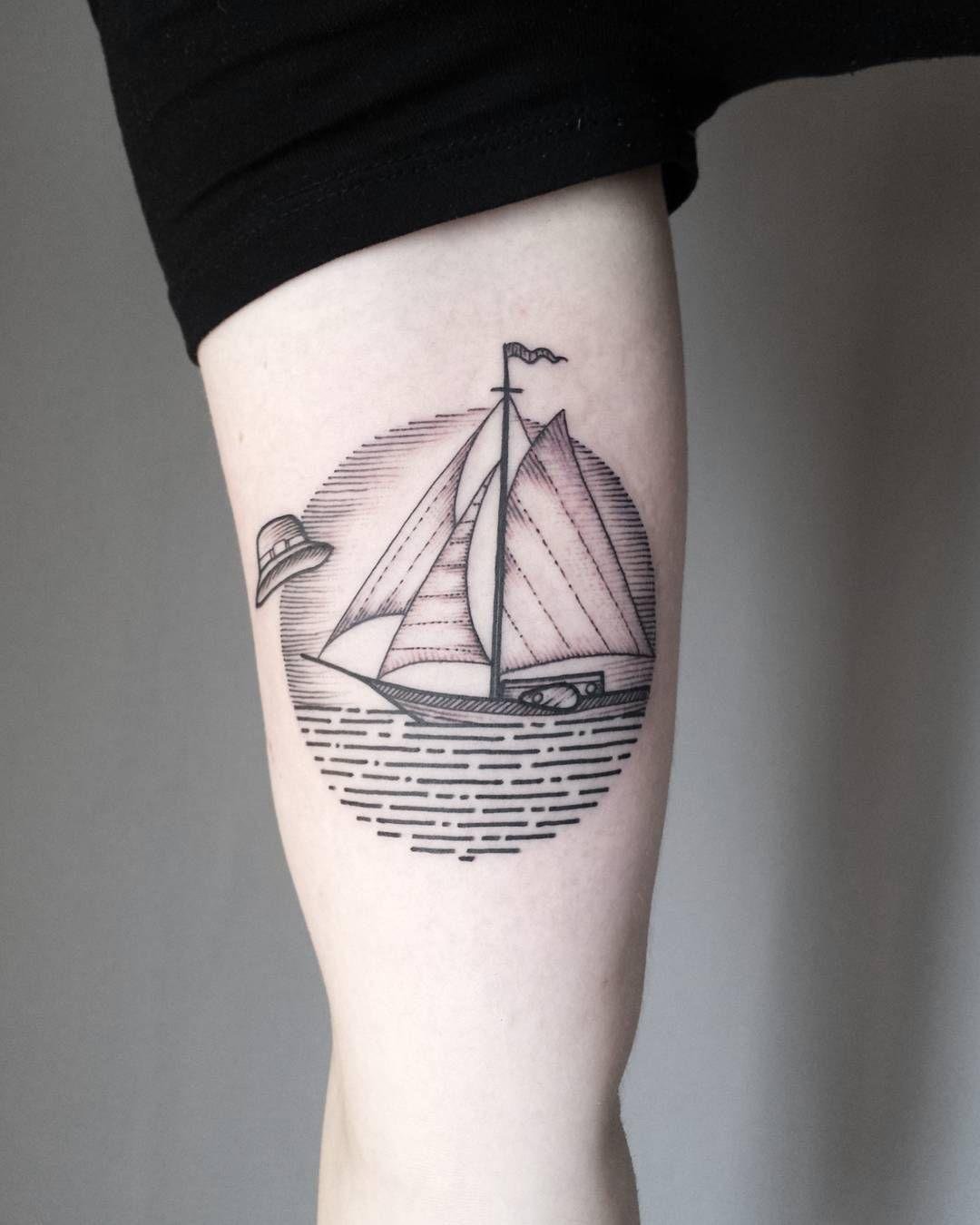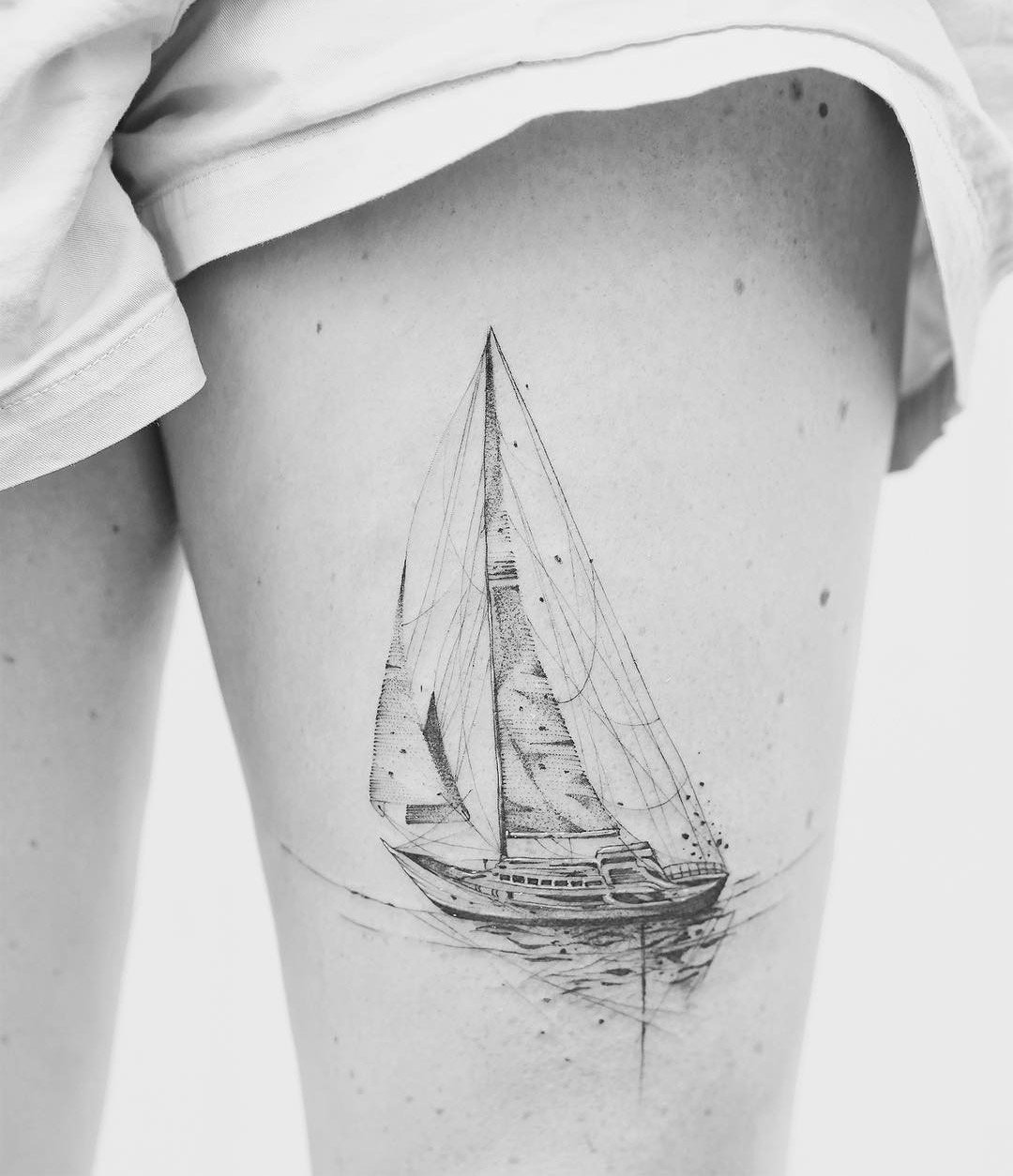 • Легкие линии шхуны говорят о том, что обладательница тату любит мечтать и парить в облаках.