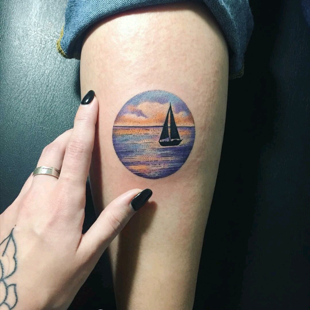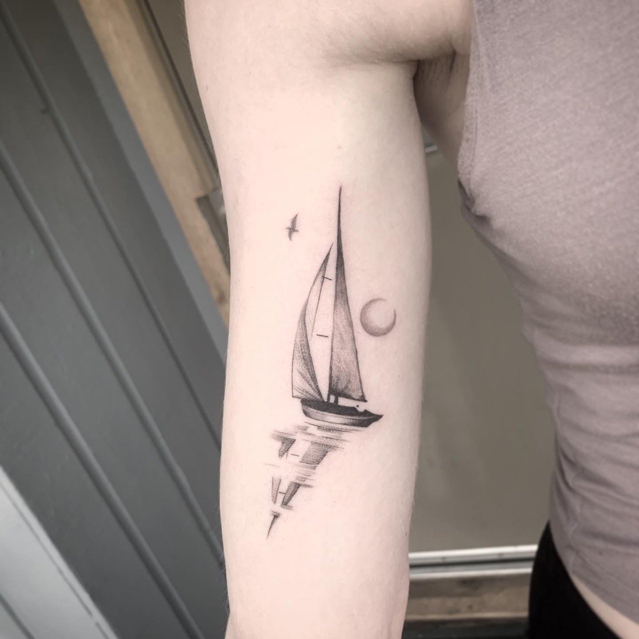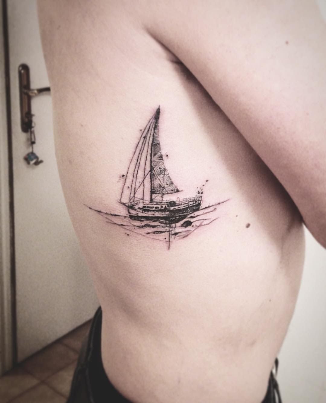• Легкие линии шхуны говорят о том, что обладательница тату любит мечтать и парить в облаках.