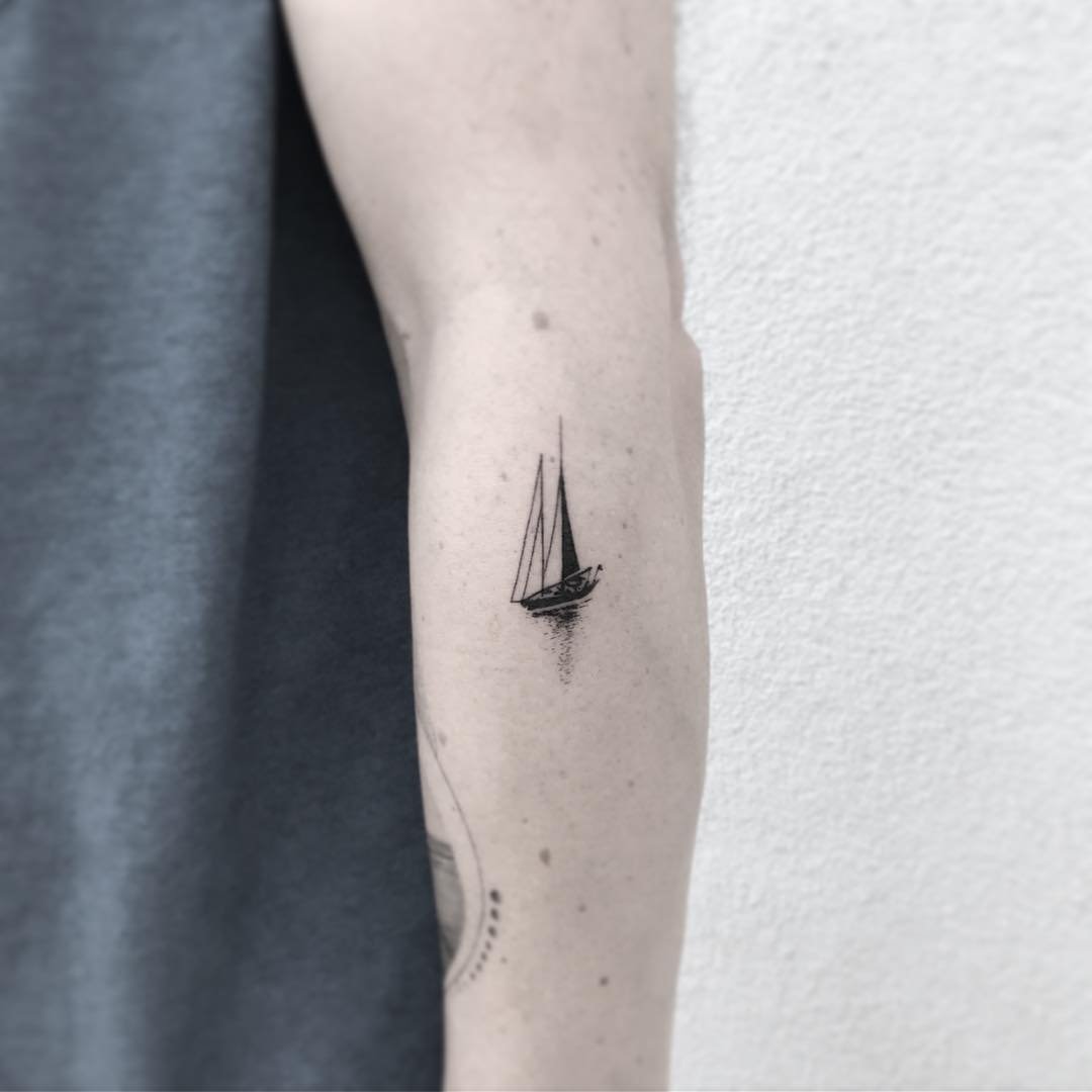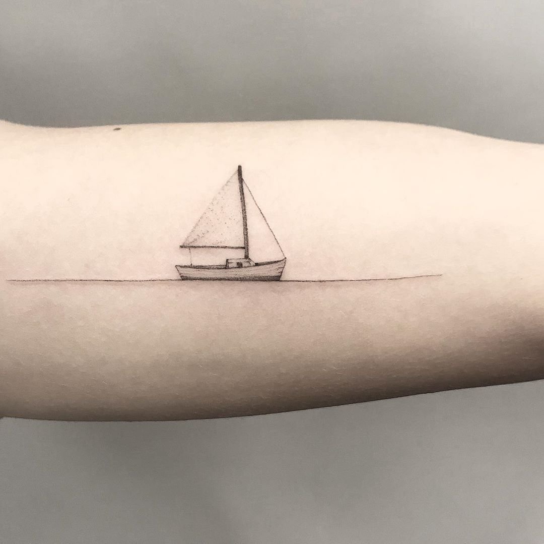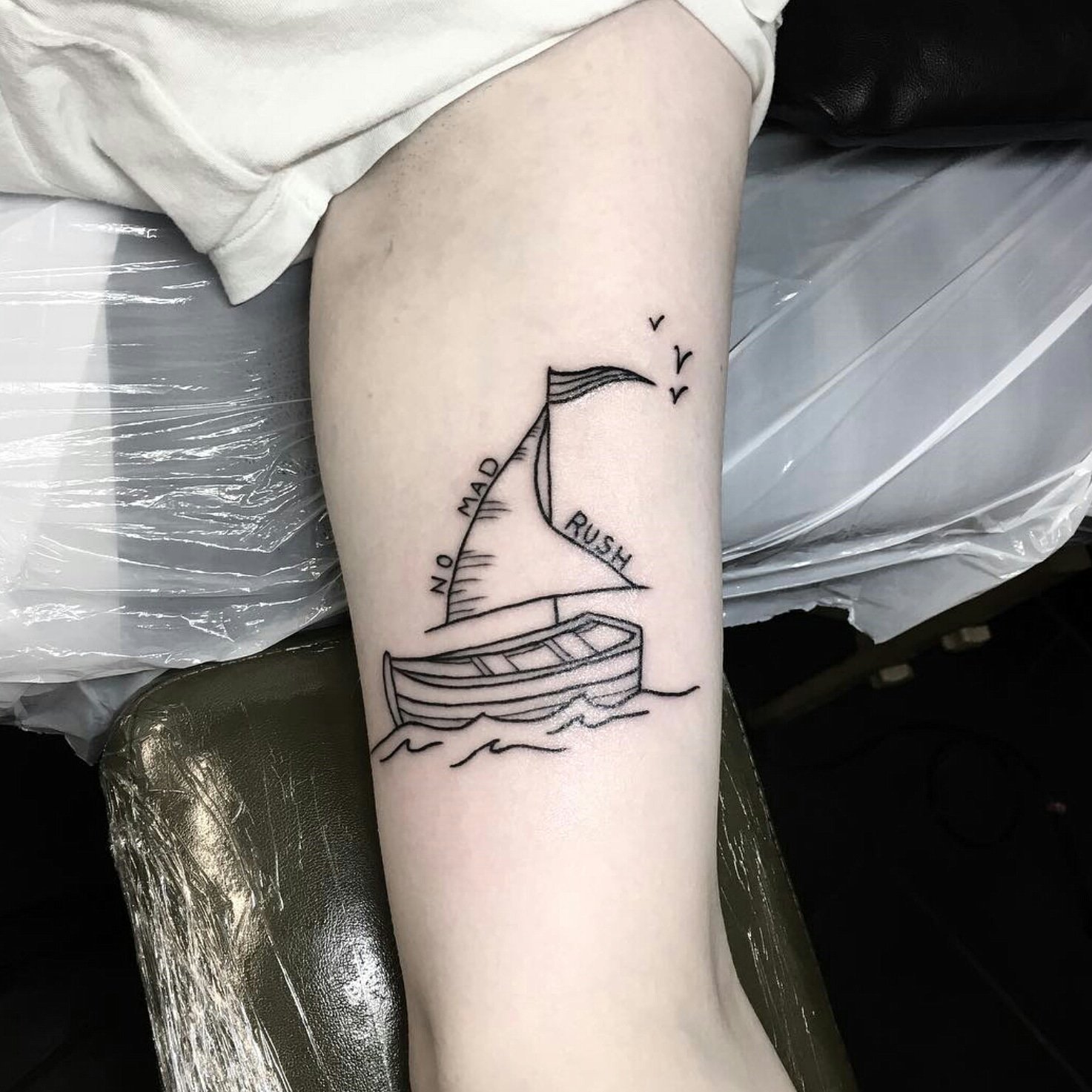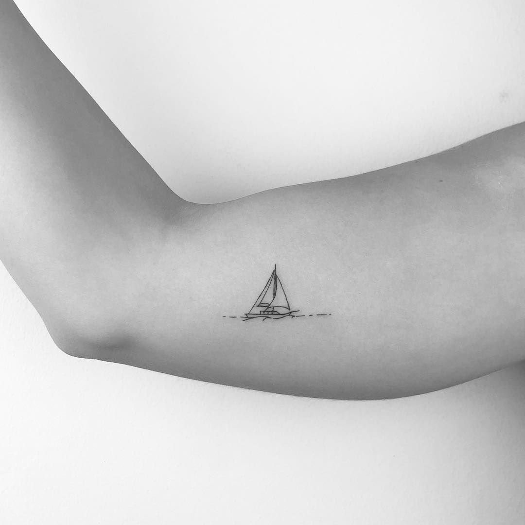 • Легкие линии шхуны говорят о том, что обладательница тату любит мечтать и парить в облаках.