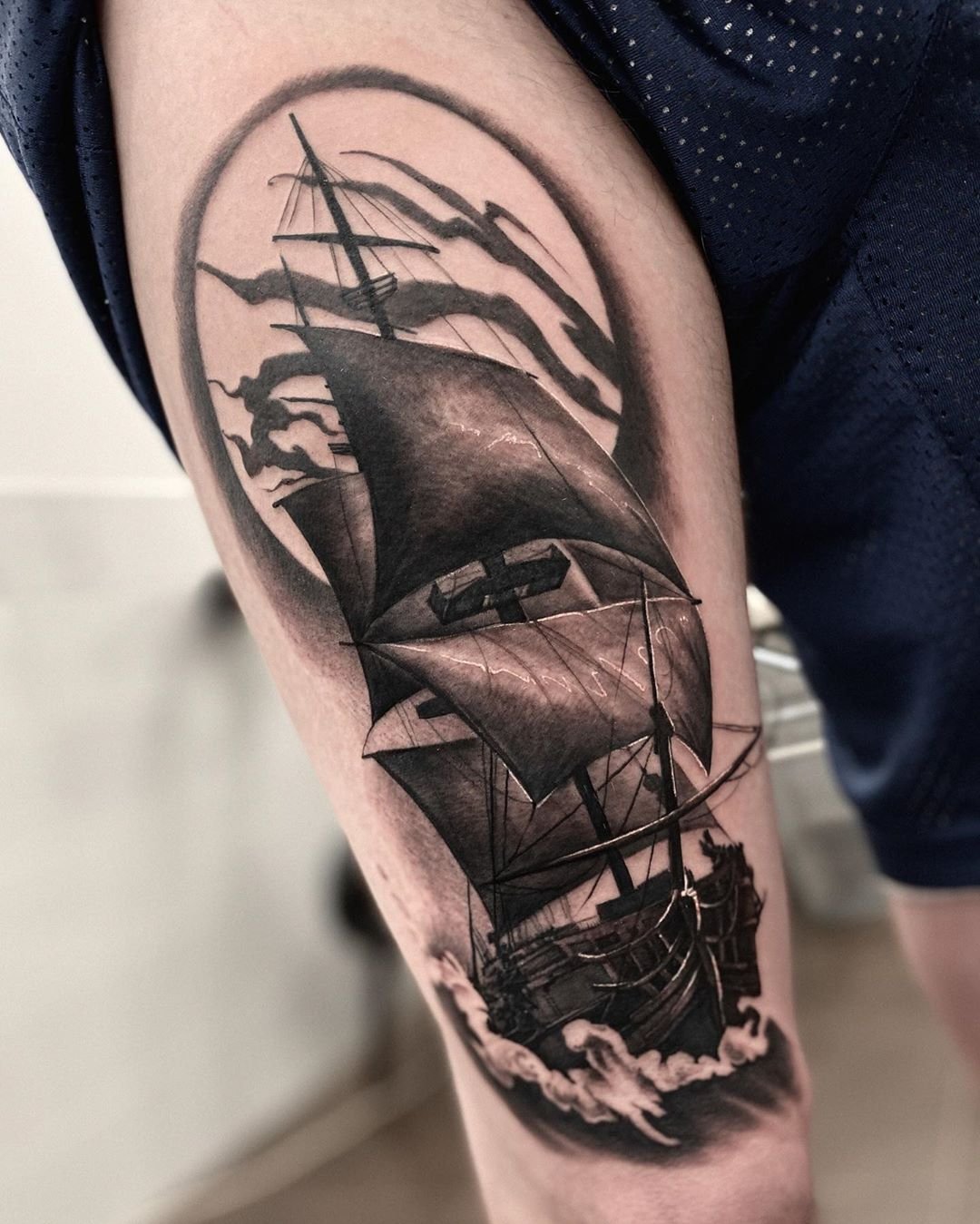 Сегодня ограничения к тату корабль давно сняты, украсить свое тело шикарным парусником могут все желающие мужчины и женщины.