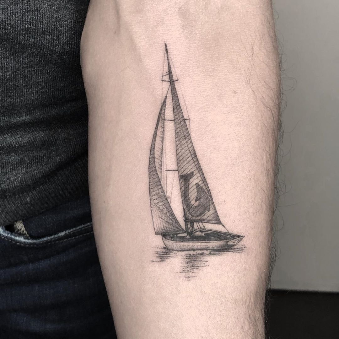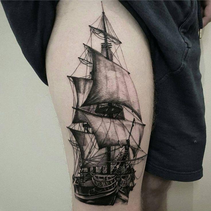 Парусник прекрасно дополняет образ обладателя тату, который довольно часто меняет места проживания. Так же тату парусник говорит о стремлении человека к совершенству.