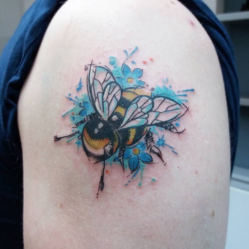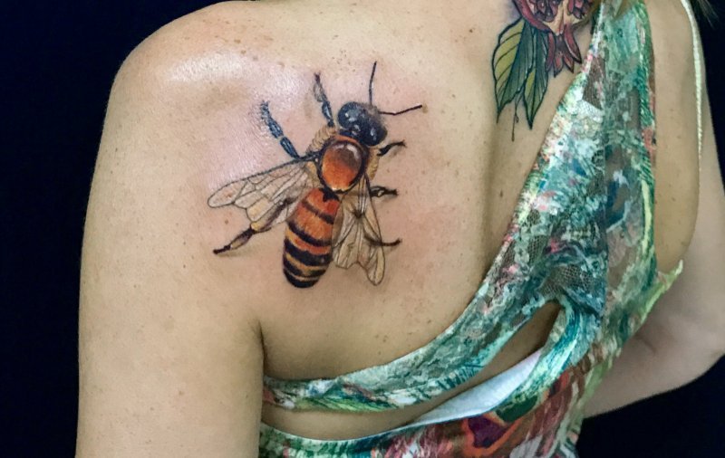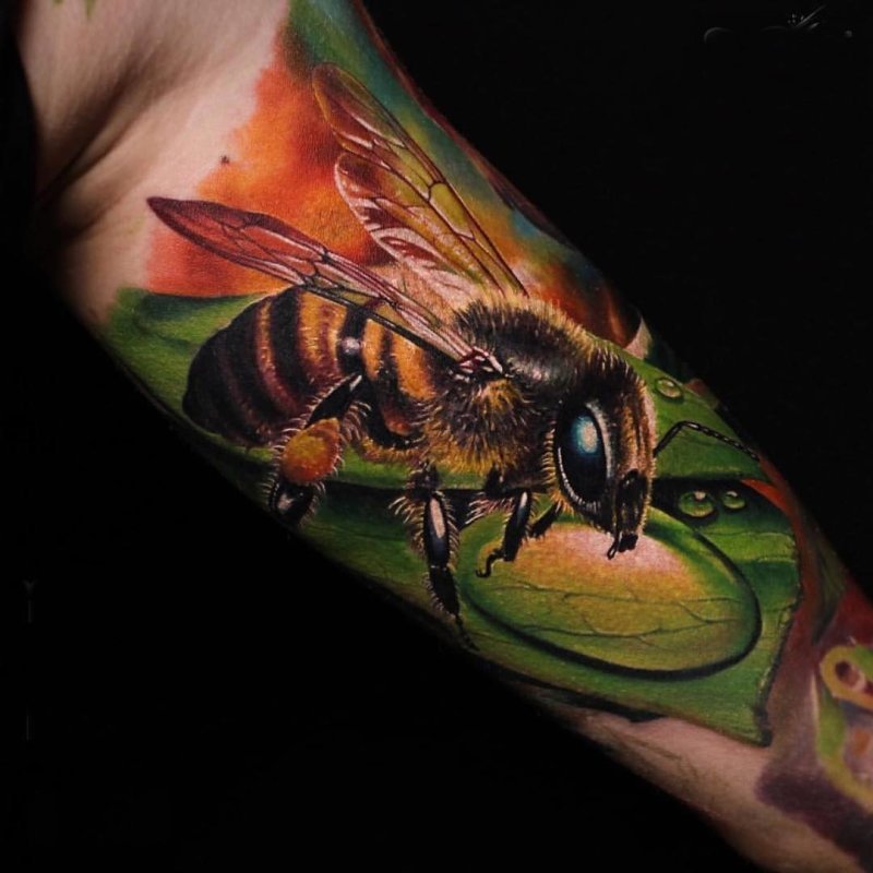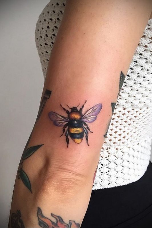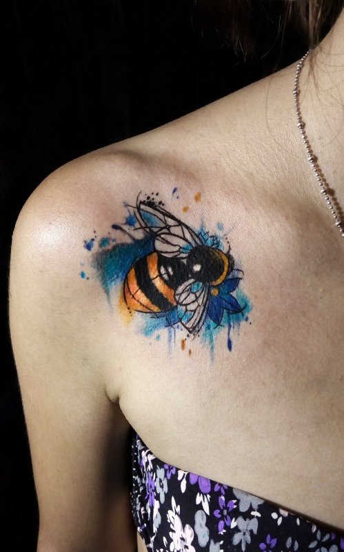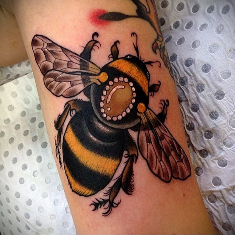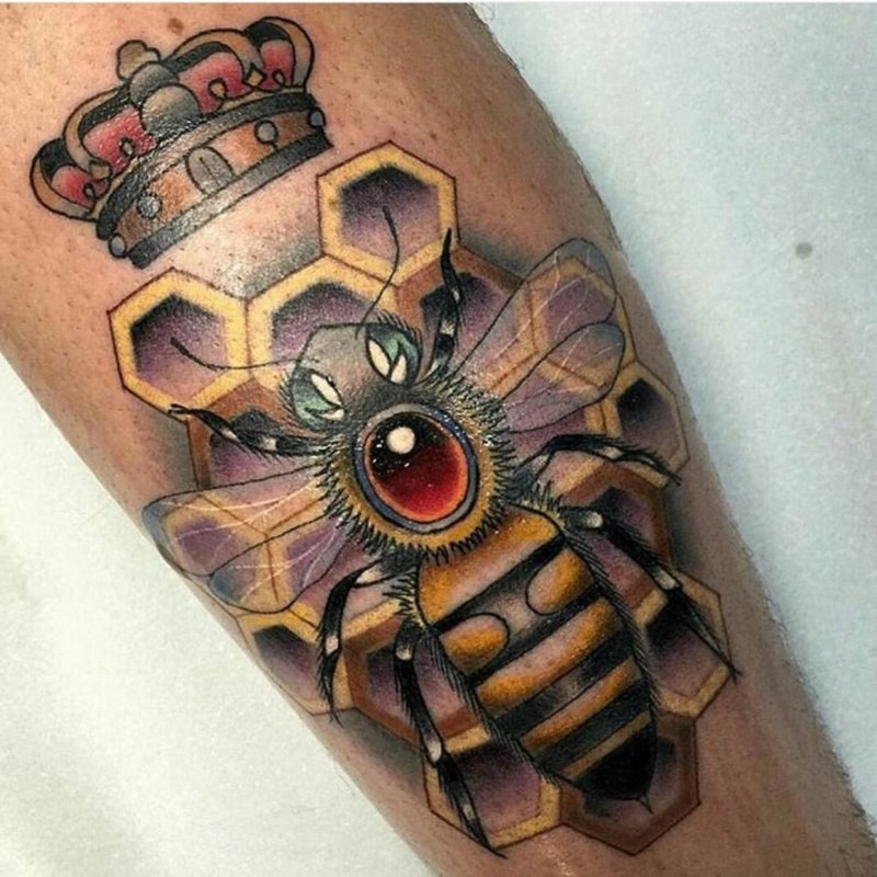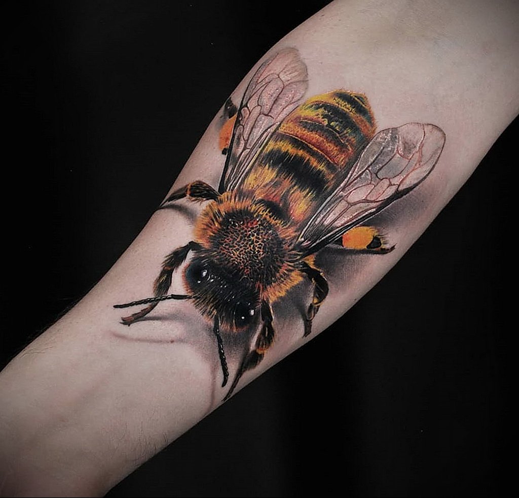 В зависимости от используемых символов, оттенков цветов, стилей, атрибутов и техник меняется посыл татуировки с пчелой.