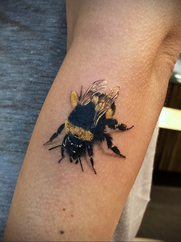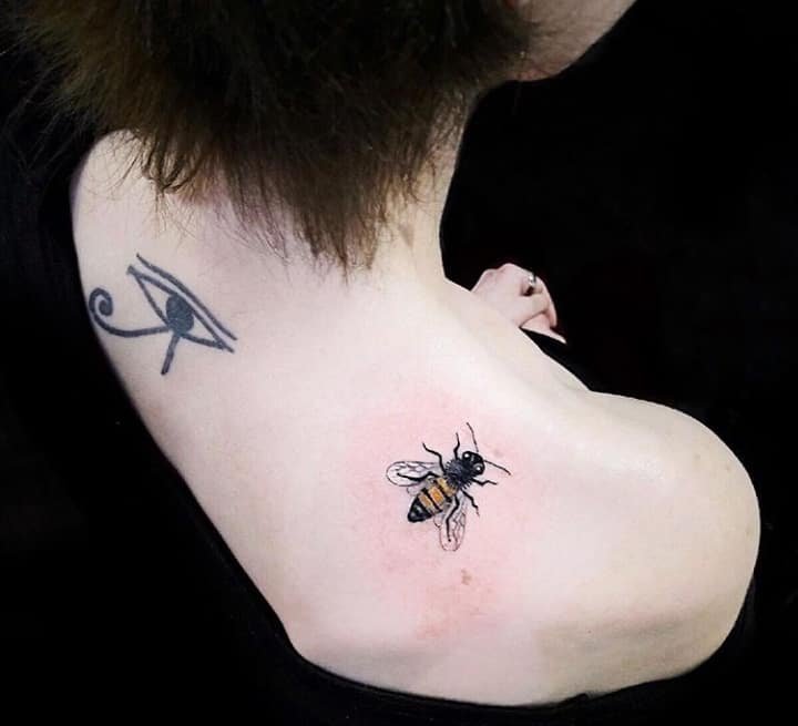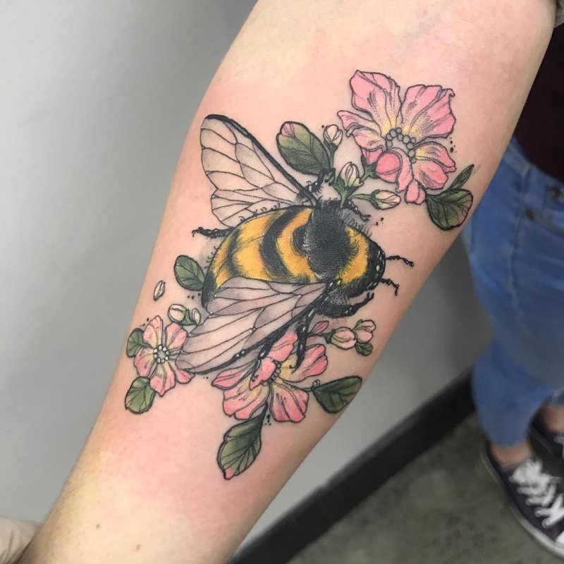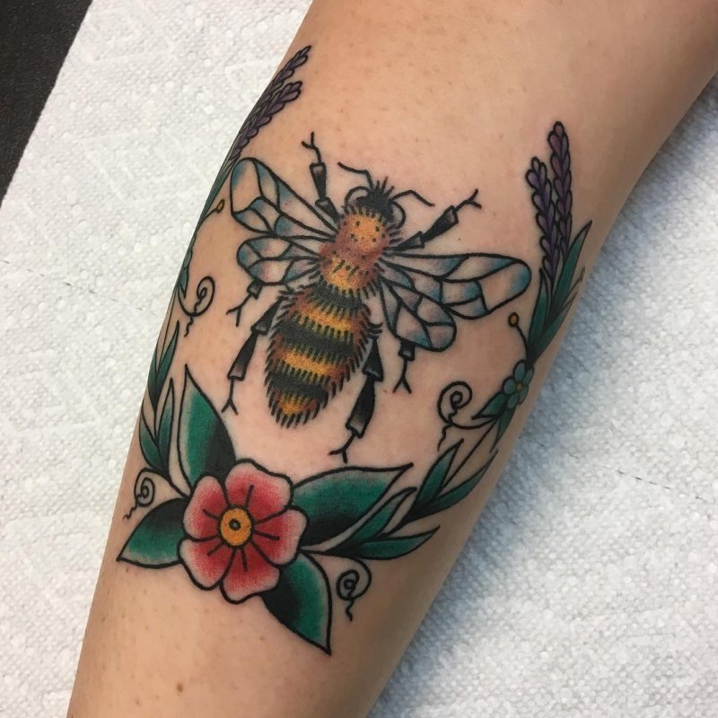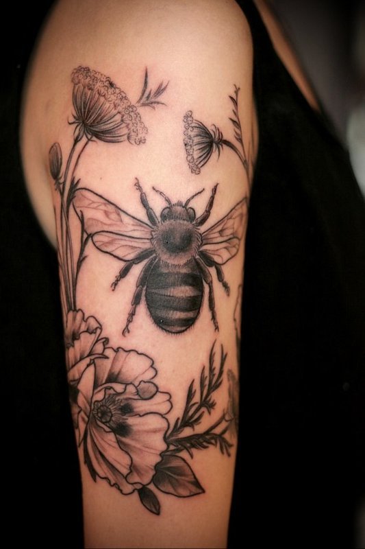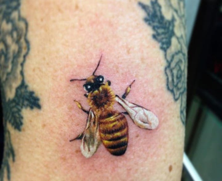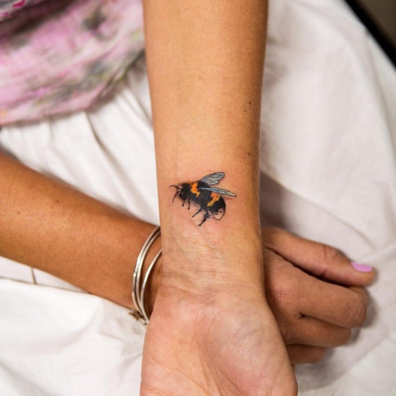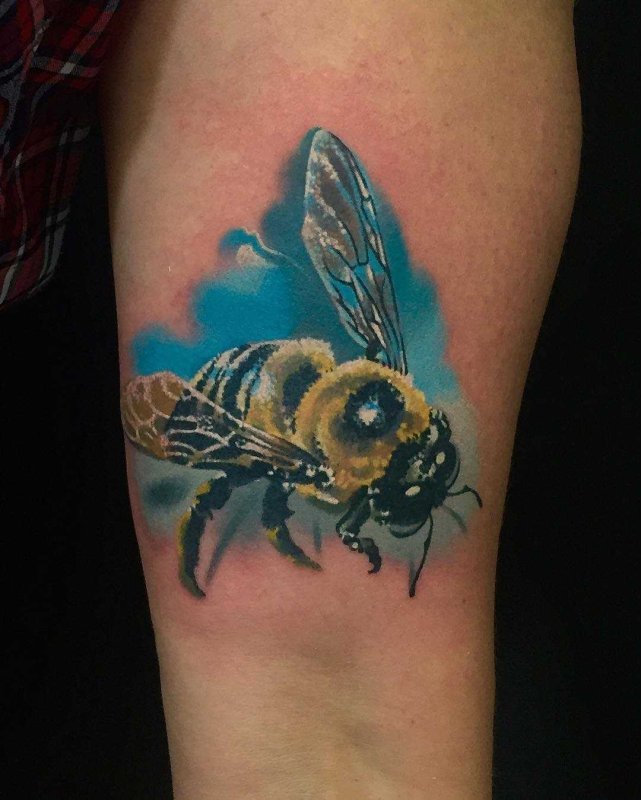 В зависимости от используемых символов, оттенков цветов, стилей, атрибутов и техник меняется посыл татуировки с пчелой.