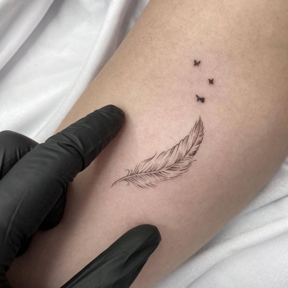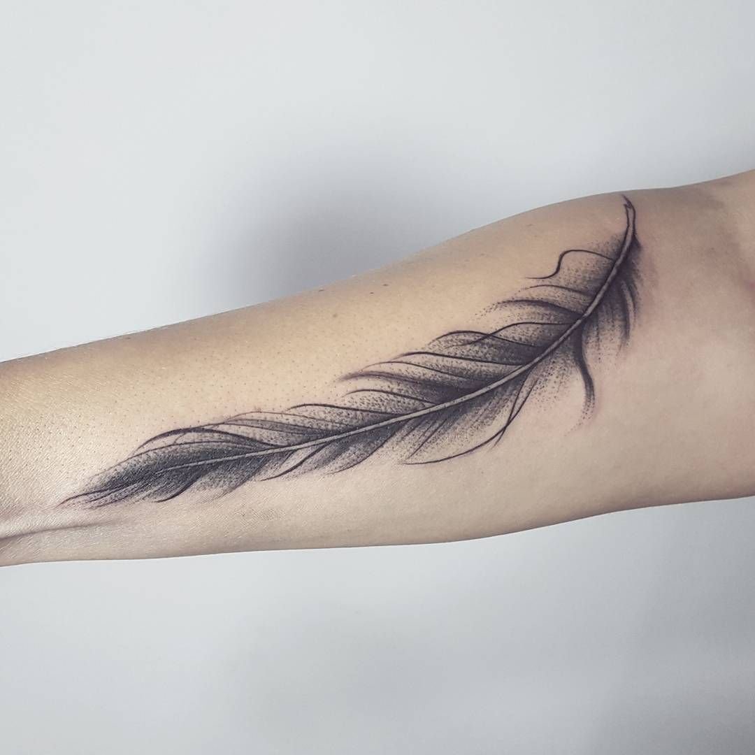 Татуировки с изображением пера всегда смотрятся очень оригинально и интересно.