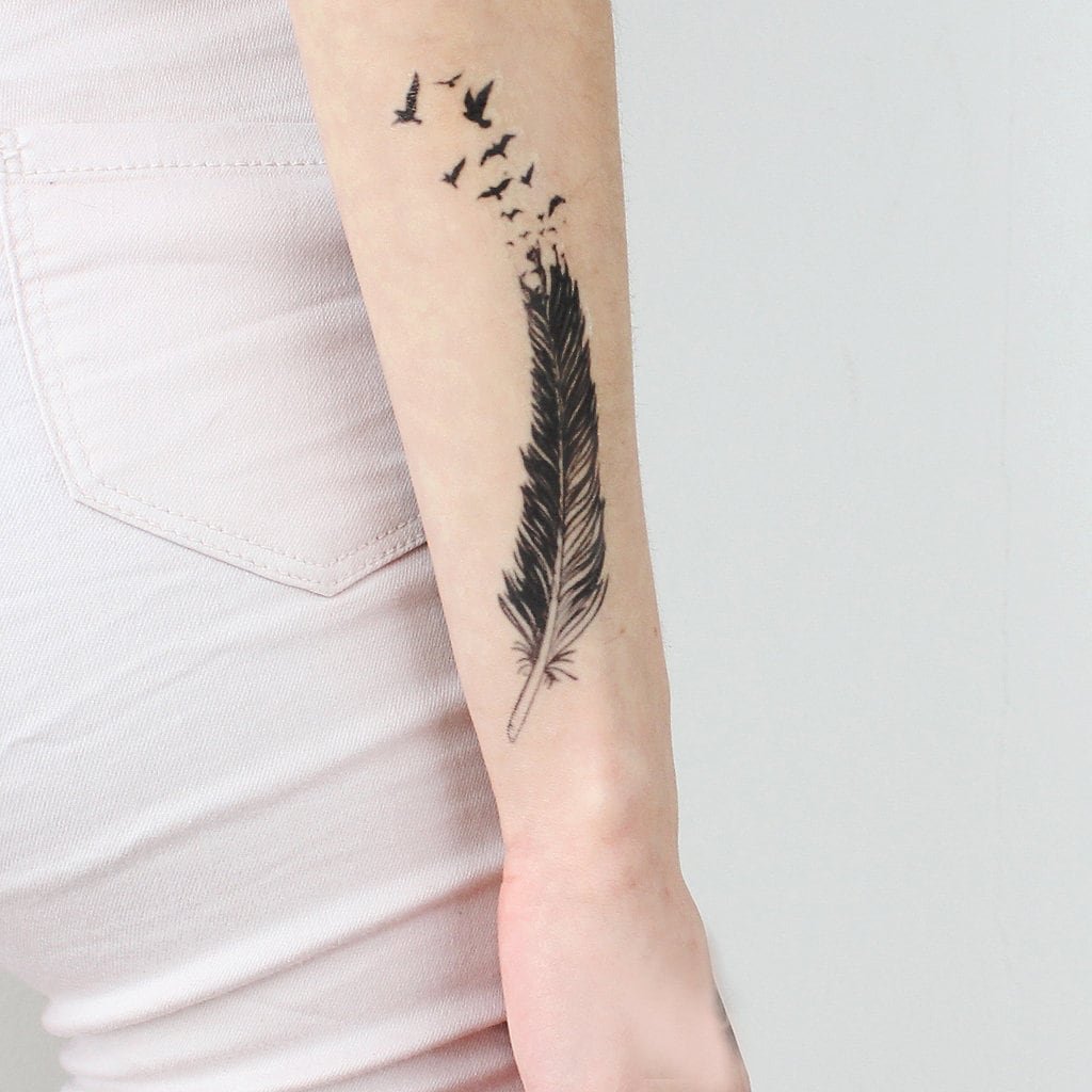 В основном набивают одно перышко, любой предпочитаемой птицы (совы, ласточки, орла, жар-птицы и так дале), на самых разных частях тела. Изображение может быть в самой разнообразной цветовой гамме, это может быть как классическое перо в черно-белых тонах, так и различные перья в ярких оттенках. Стоит заметить, что цвет пера так же несет в себе особое значение.