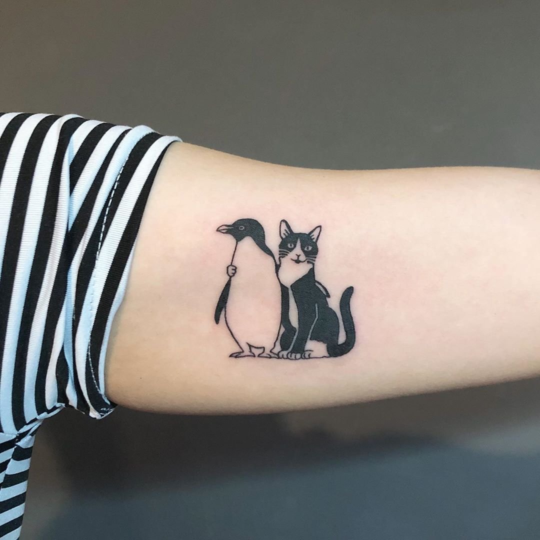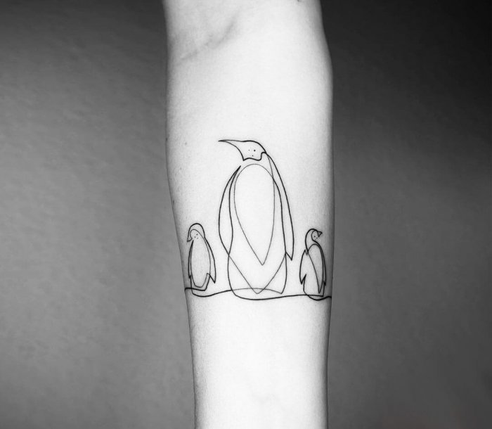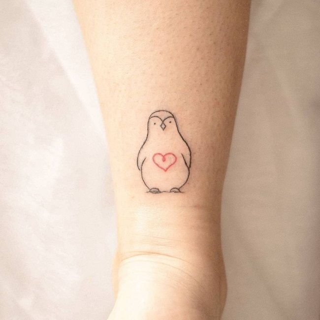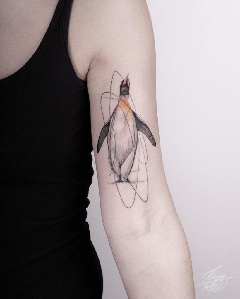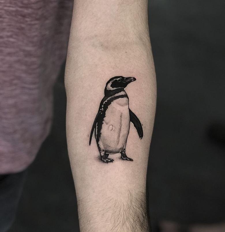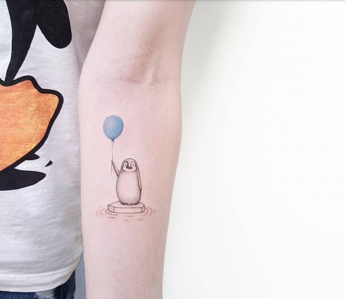 Одной из самых позитивных татуировок является изображение пингвина. Как всем известно, пингвин это морская птица, которая имеет крылья, но не умеет летать, к тому же неуклюжа на суше. Вместо этого пингвины невероятно быстро и грациозно могут передвигаться в воде, одолевая колоссальные расстояния. Внешний вид пингвина всегда умиляет людей, пингвины очень милые, позитивные, смешные птицы, их уникальный окрас делает их похожими на маленьких джентльменов. В татуировке с изображением пингвина нет ни одной темной стороны, их обозначение наполнено исключительно положительными качествами. Люди, выбирающие данную птицу для татуировки, обычно дружелюбные, общительные, позитивные и хорошо работают в команде. Так же татуировку пингвина могут выбирать люди, чья работа либо увлечение связано с компьютером. Как правило, они выбирают изображения пингвина Тука, который выступает официальным талисманом Linux. Для многих музыкантов либо ди-джеев приходится по нраву изображения веселого пингвина, на котором одеты наушники.