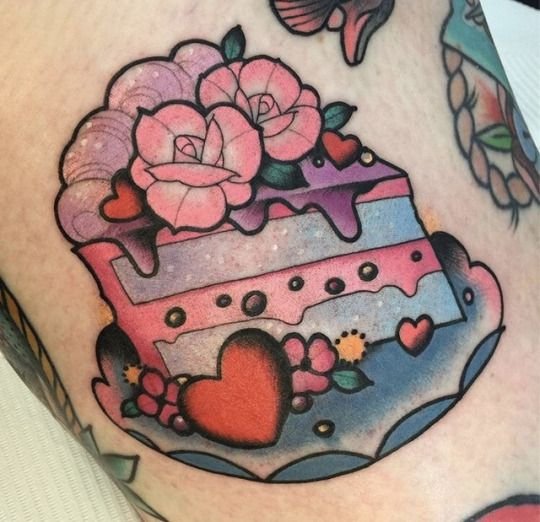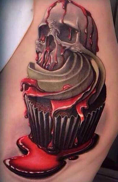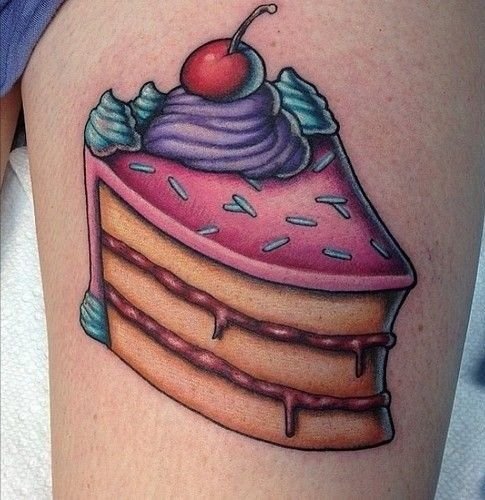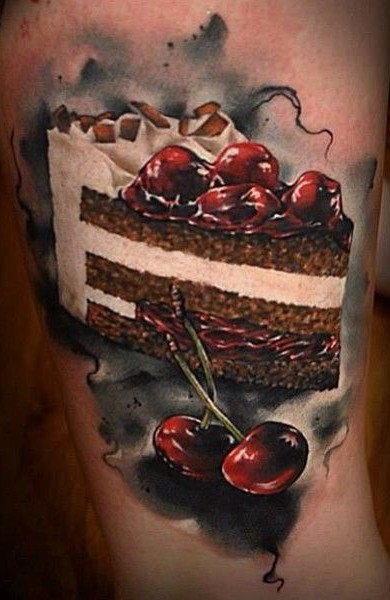 Изображать на своем теле рисунки пирожных - является новинкой для сферы художественной татуировки, но, несмотря на это, такие тату пользуются огромным спросом. Смотрятся такие работы на теле довольно необычно и интересно. Это отличный вариант выделиться, продемонстрировать свою индивидуальность. Как правило, пирожные в татуировках выполняют небольших размеров, рисунок легко поместиться на запястье, бедре, шее и даже пальце.