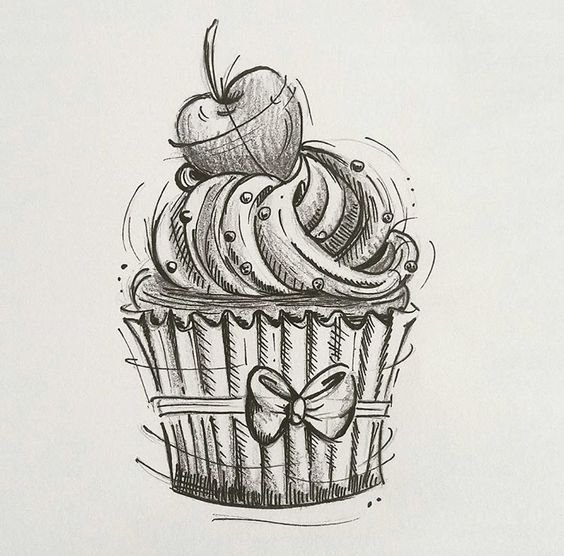 Эскиз пирожного в котором наверху крема располагается вишенка или клубничка, говорит о том, что человек любит быть в центре внимания.