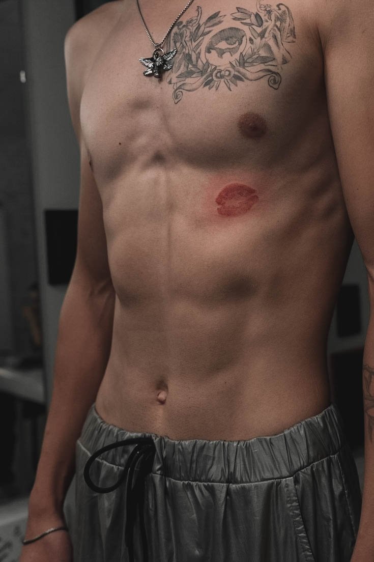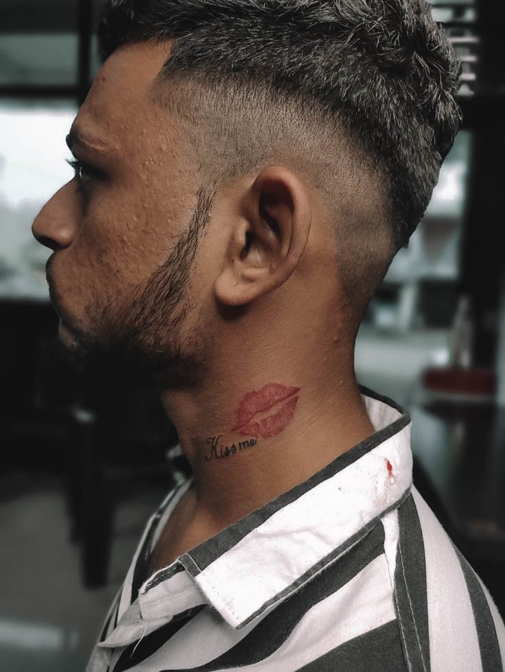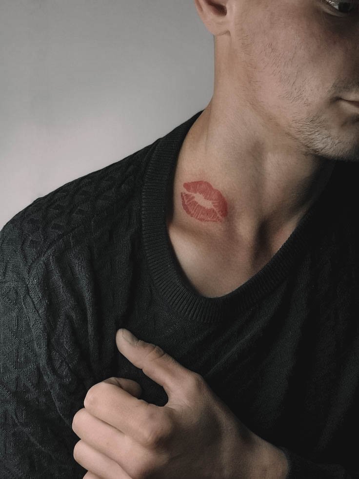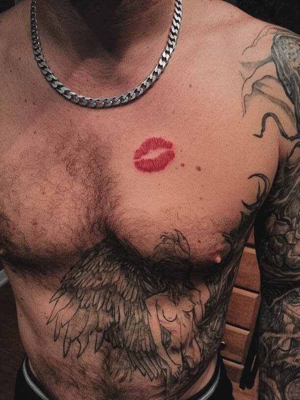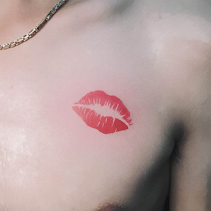 Мужчины наносят рисунок с поцелуем как символ харизмы, страсти или даже дерзости.