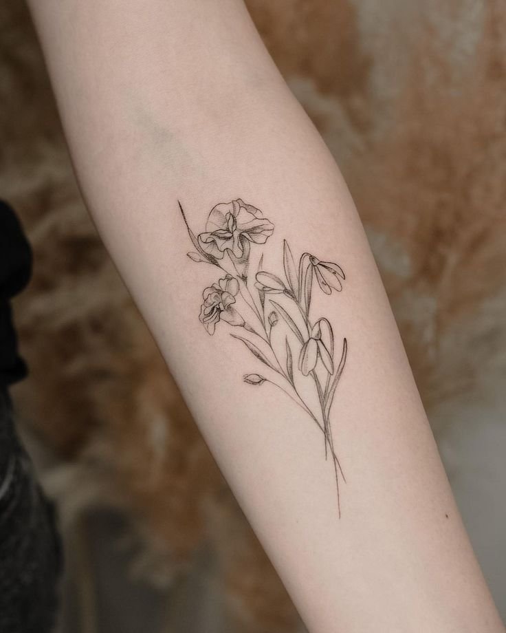 - Подснежник — это довольно универсальный цветок, который можно адаптировать под любые стили и размеры. Маленький минималистичный рисунок на запястье или крупная композиция на спине — этот цветок будет гармонично смотреться как в одном, так и в другом варианте. Это также отличный выбор для тех, кто предпочитает тату, отражающие простоту и элегантность.