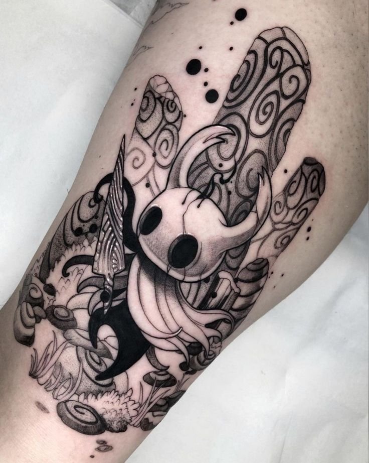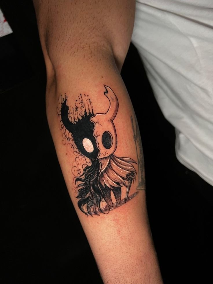 - Вдохновение игрой: Для фанатов Hollow Knight татуировка с Полым рыцарем будет не просто украшением, а символом любви и преданности любимой игре и её идеям.