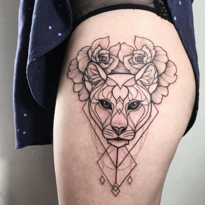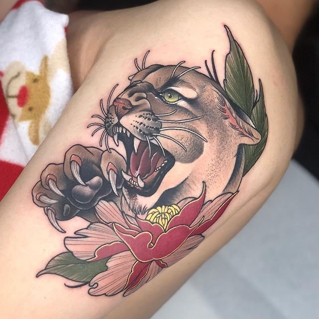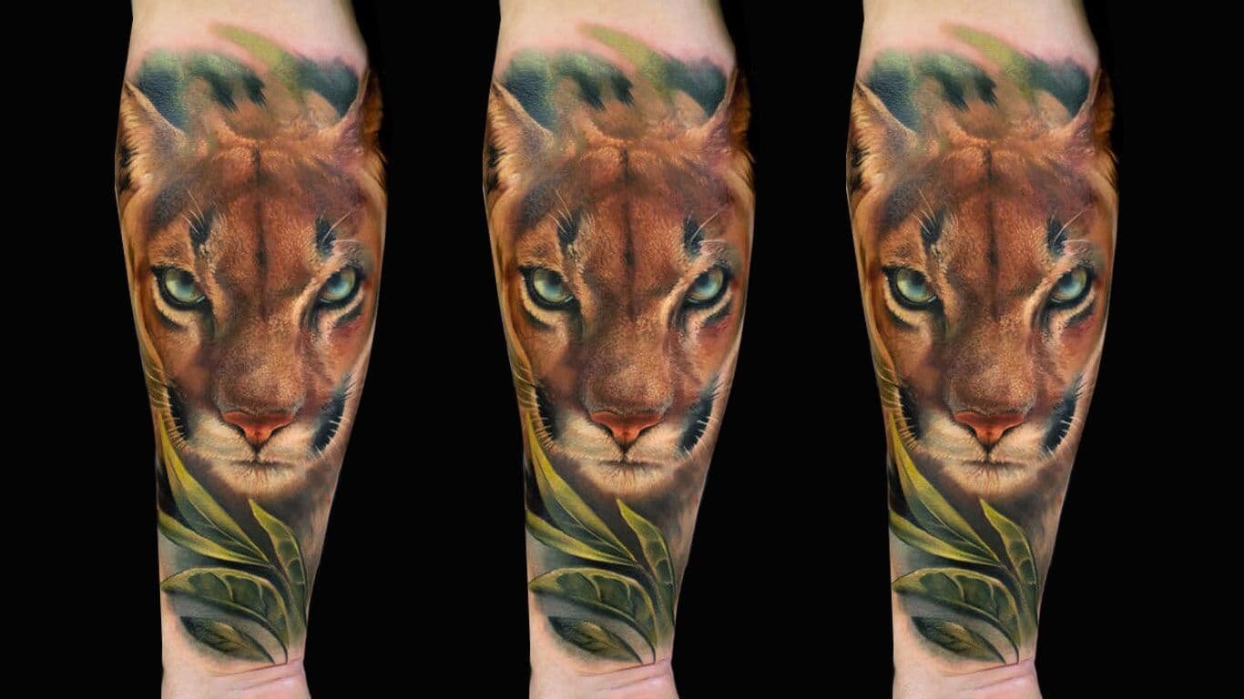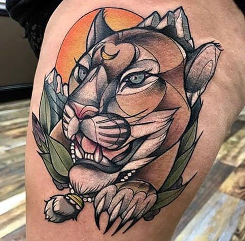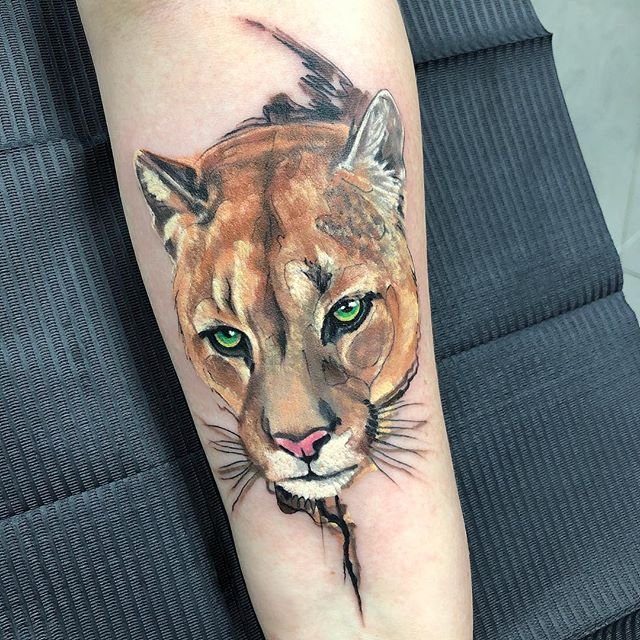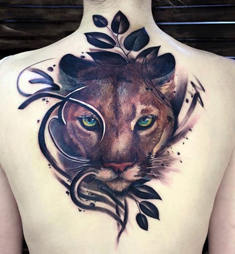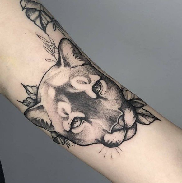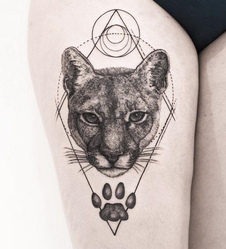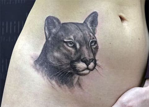 В татуировках пуму изображают как во весь рост, так и исключительно голову зверя.
