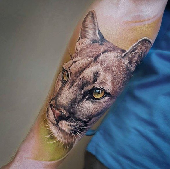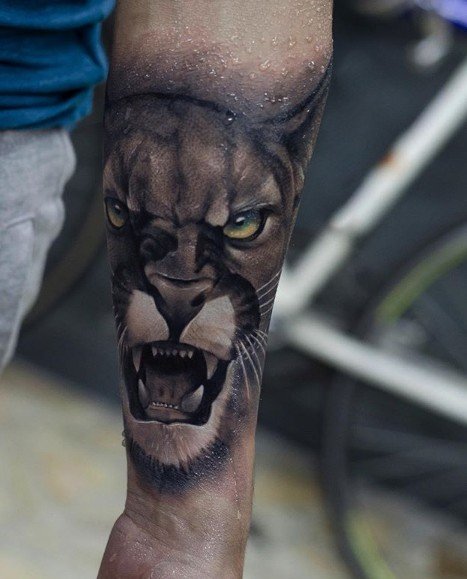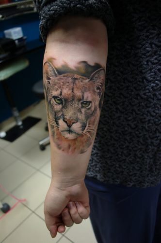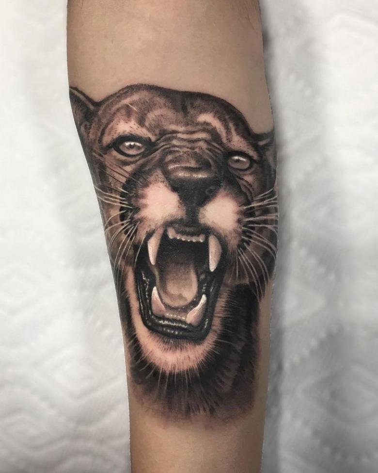 Если речь идет о пуме в полный рост, во всей красе, лучшим местом для ее нанесения будут масштабные участки тела: спина, грудь. Если же речь идет о самой голове животного, вполне подойдут такие части тела как предплечье, плече, верхняя часть ноги.