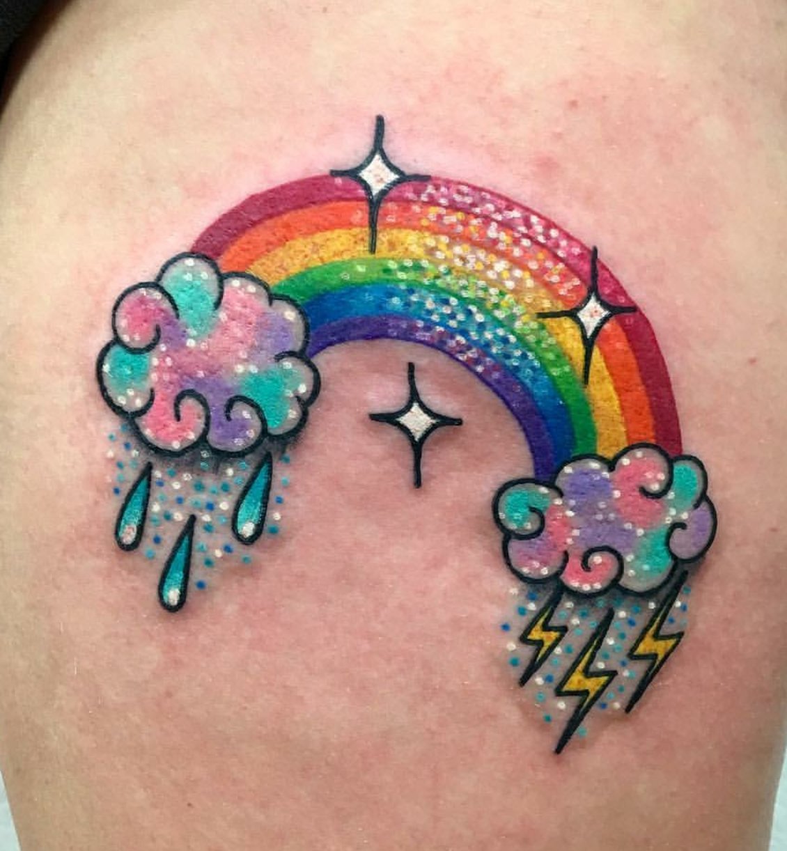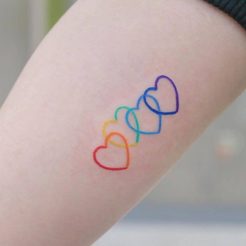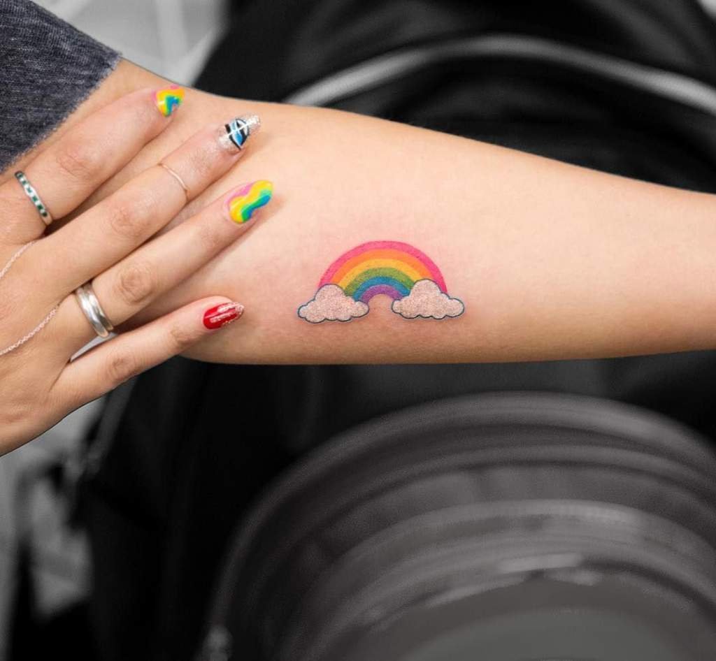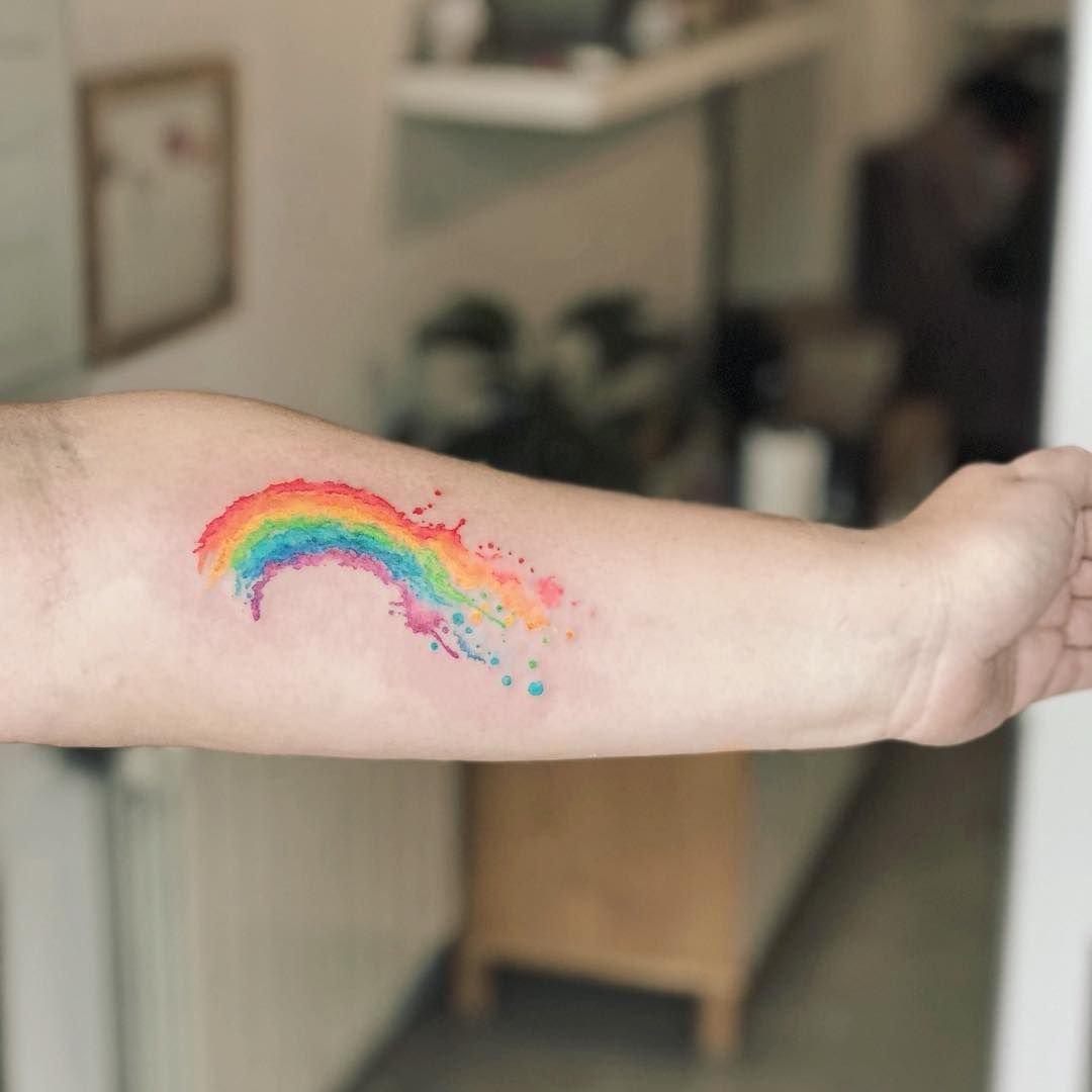 В тату-сфере радугу изображают как в едином варианте, так и с дополнительными элементами. Так же, радуга может служить фоном для основного рисунка, либо же сам рисунок может быть выполнен в радужной расцветке. Такая татуировка всегда выглядит эффектно и красочно, что является основным ее достоинством.