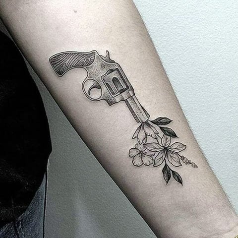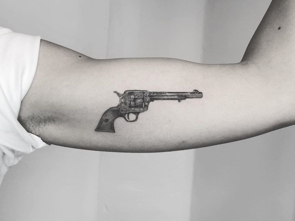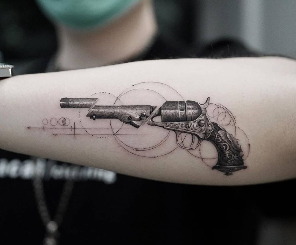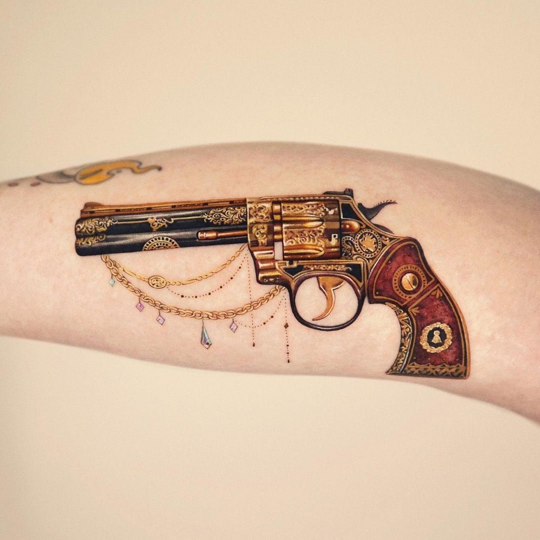 В сфере тату существует масса популярных изображений, одним из таких является изображение револьвера, которое появилось не так уж давно в данном искусстве.