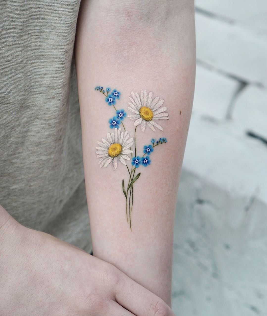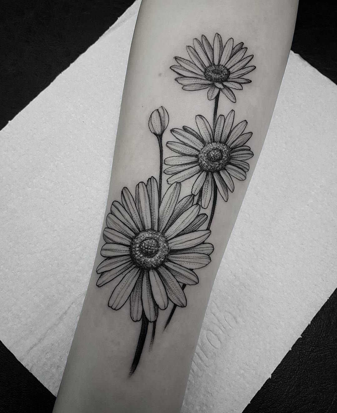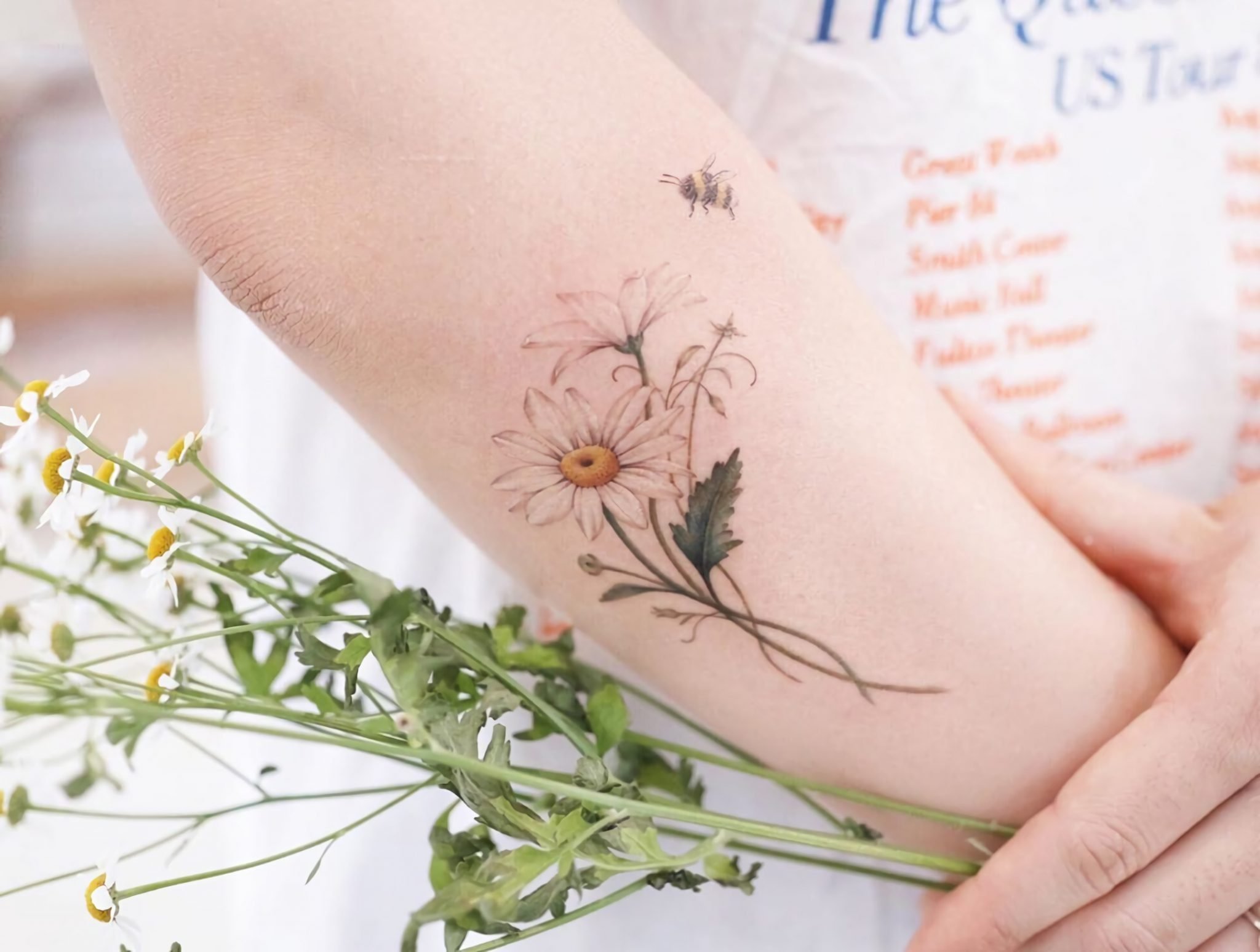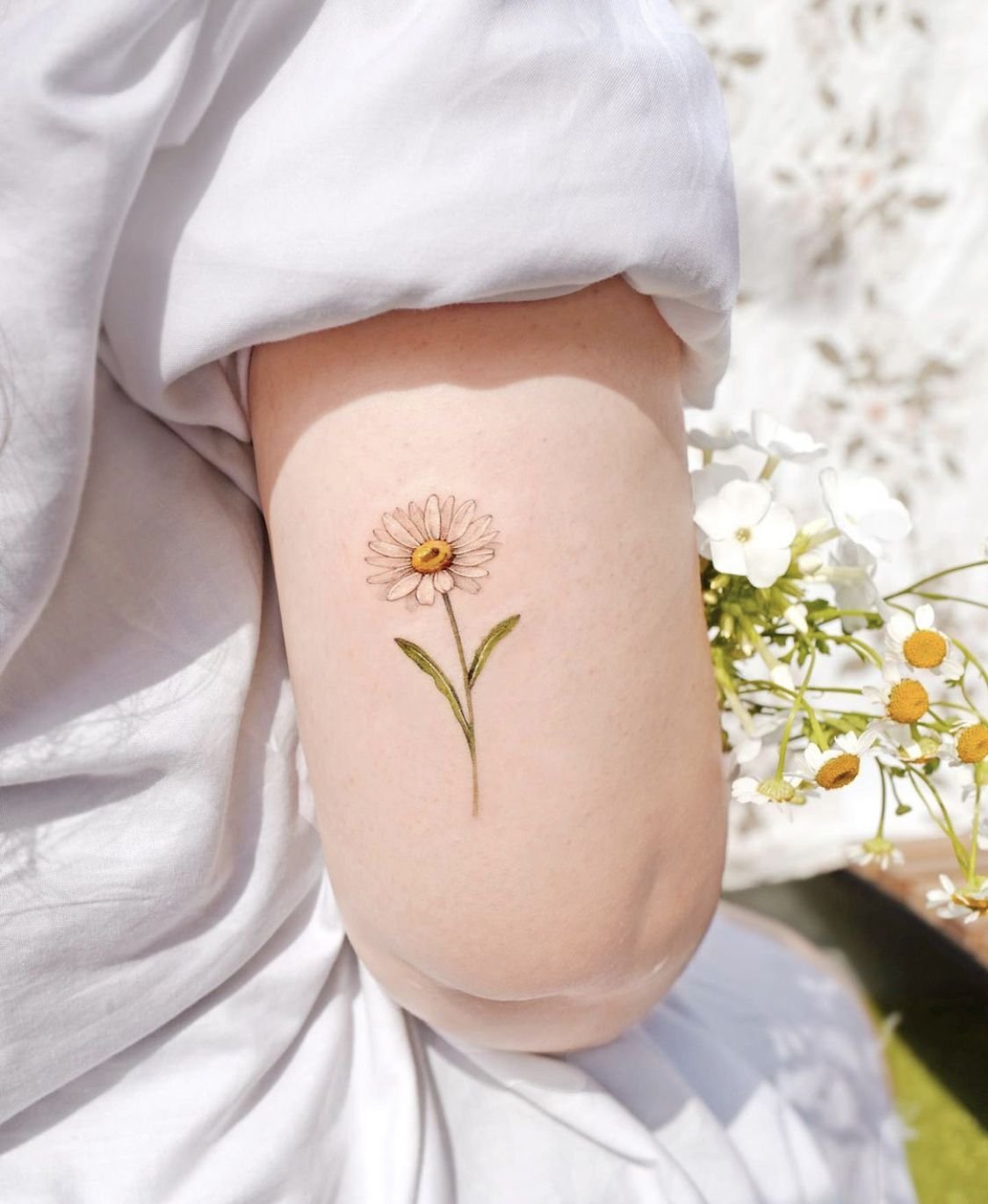 Татуировка с изображением ромашки, как правило, является знаком чистоты, жизни, многие связывают данный цветок с исцелением тяжелых заболеваний.