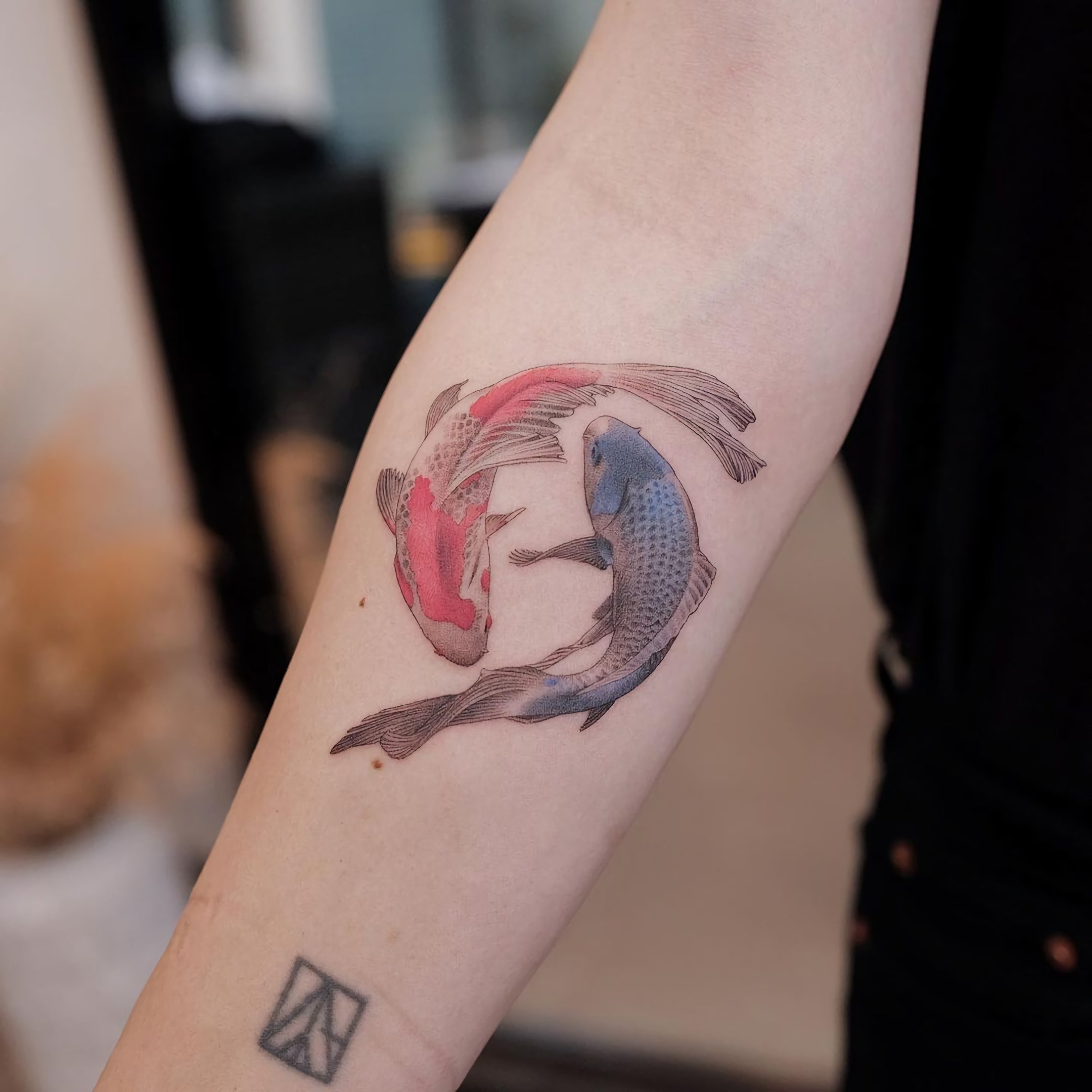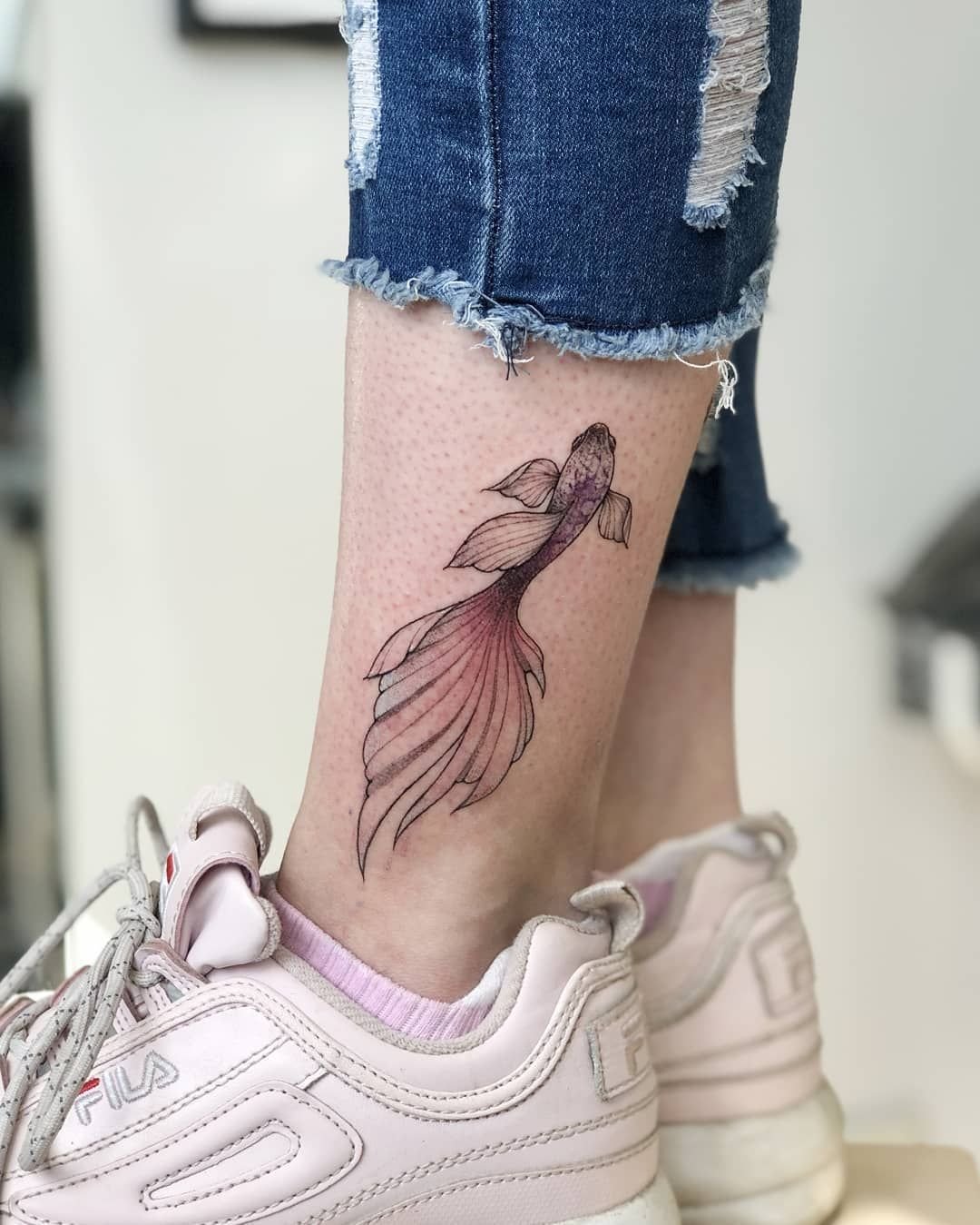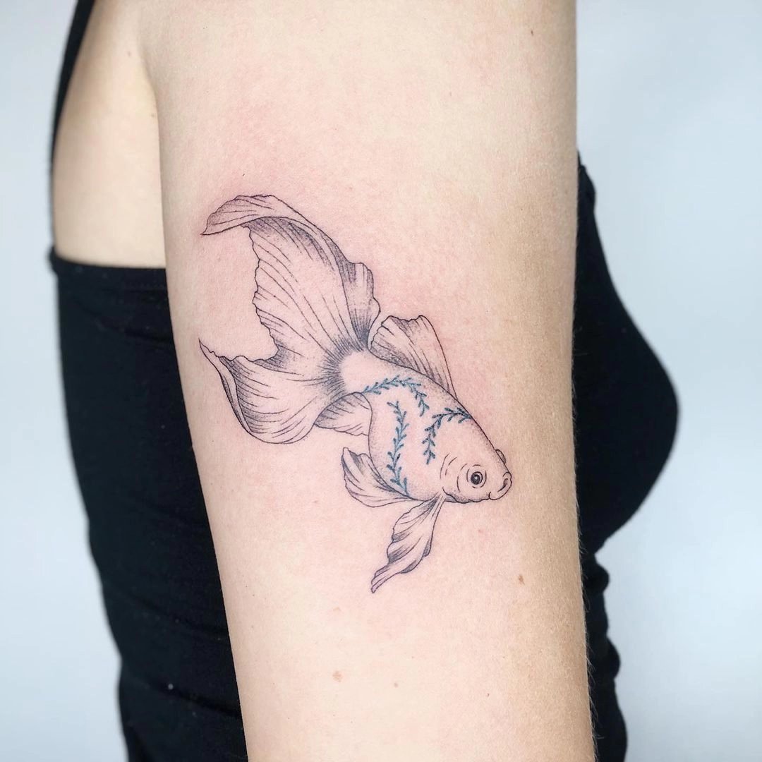 Татуировка рыбы в наше время очень распространенная, ведь изображение завораживает не только своим внешним видом, но и имеет множество значений. Это очень позитивный символ, который характеризует гармонию и плодовитость.