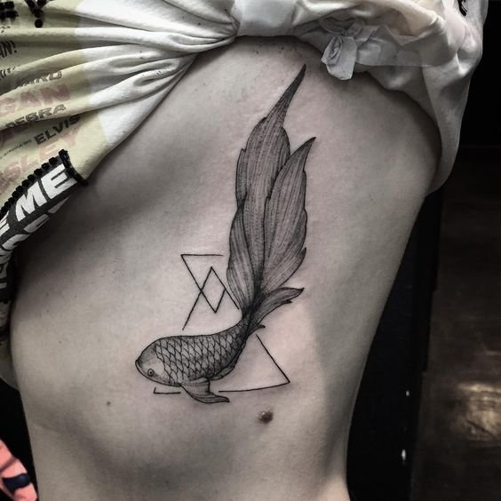 Татуировка рыбы символизирует здоровье, благополучие и мудрость человека.