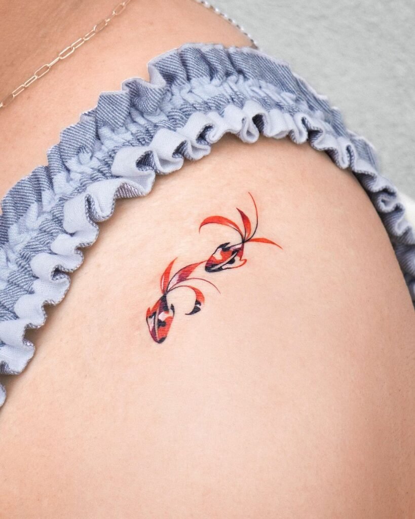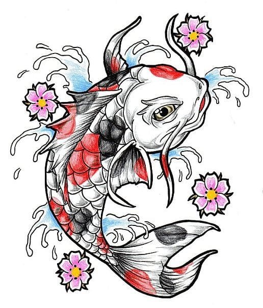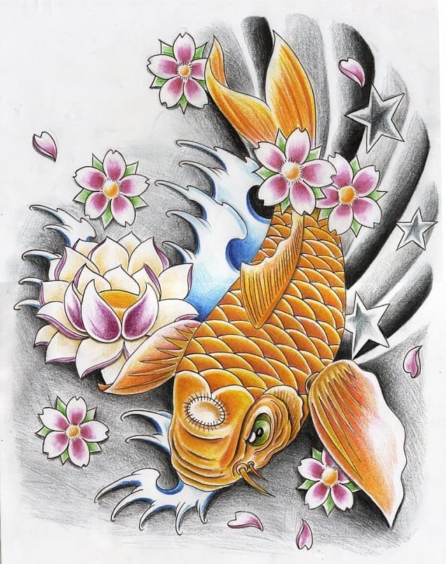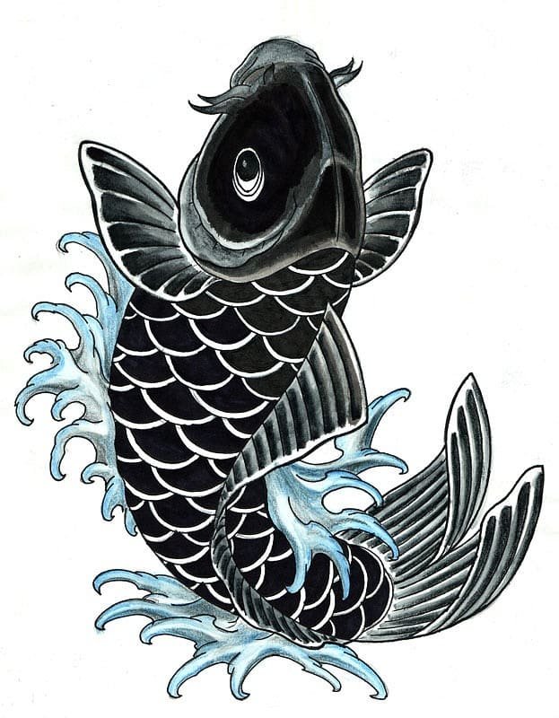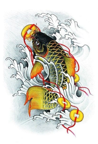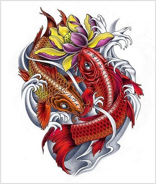 Данный нательный рисунок символизирует отвагу и целеустремленность человека, говорит об умении достигать новых вершин несмотря на трудности. Группа карпов-символизирует союз мужчины и женщины, который очень гармонично развивается.