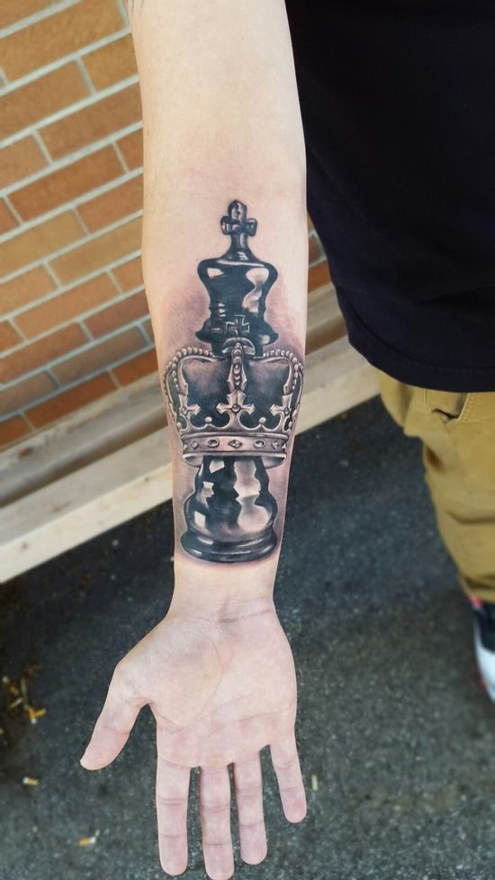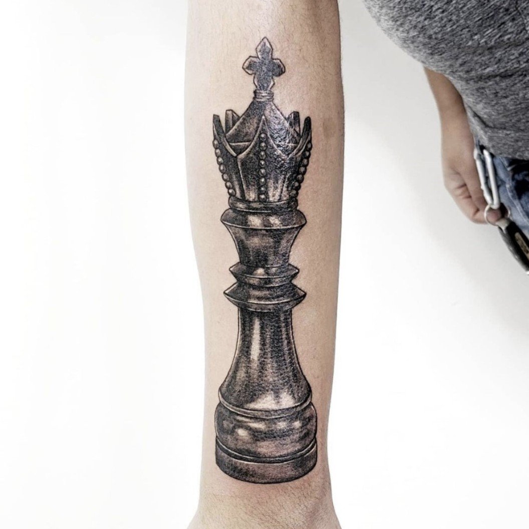 Король - это самая основная и главная фигура на шахматной доске. Обладатели татуировки с данной фигурой достаточно властные и сильные духом люди. Это прирожденные лидеры, которые всегда добиваются поставленных целей. В социуме обладатели татуировки с изображением короля привыкли быть в центре внимания, и могут очень часто даже навязывать свое мнение другим людям.