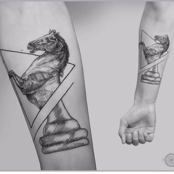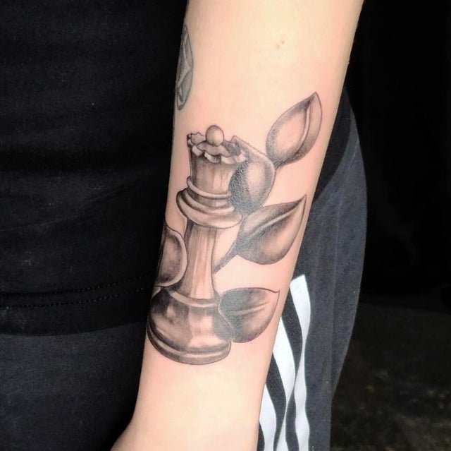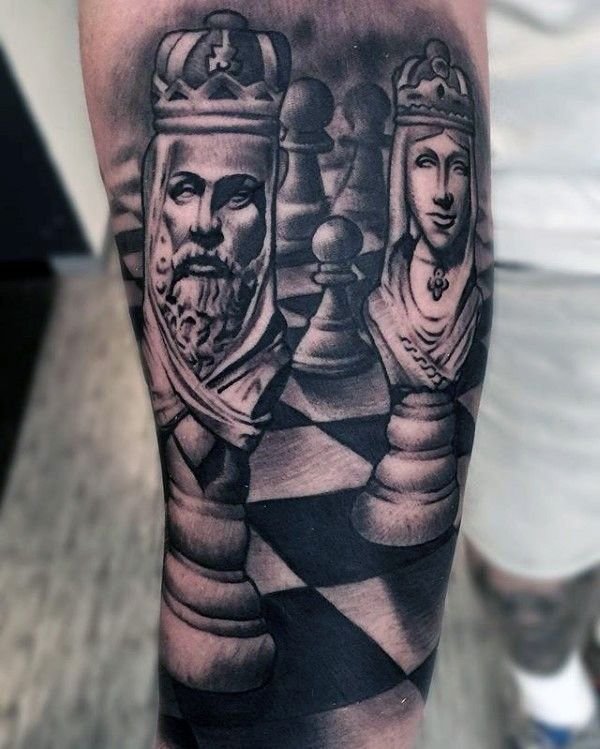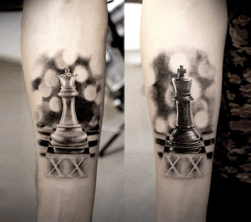 Поэтому сфера тату индустрии непрерывно растет и пользуется большим спросом уже много лет. В наше время существует большое количество эскизов для татуировок, а также стилей и цветовых решений тату. Большим спросом пользуется татуировка с шахматами как для парней, так и для девушек. Шахматы — это настольная игра, которая популярная уже большое количество времени. Изображение на теле шахмат имеет свои обозначения.
