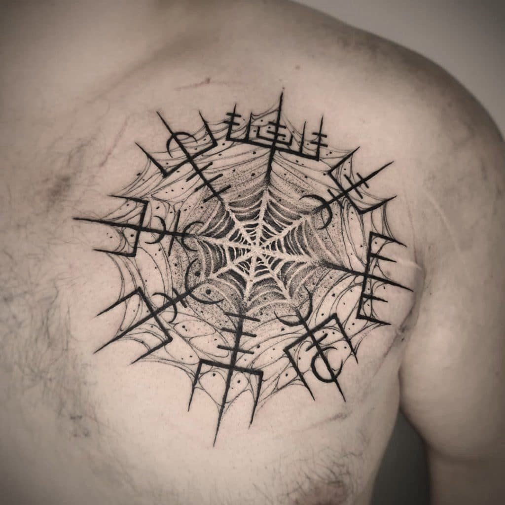 Татуировку с Шлемом Ужаса можно комбинировать с другими элементами.
