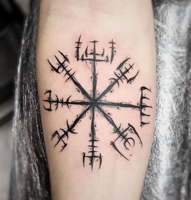 Этот символ был любимым оберегом воинов, которые отправлялись на битву. По легендам, викинги использовали его как магический щит, нанося символ на свою кожу перед важными сражениями. Считалось, что этот рисунок делает их невидимыми для врагов, придаёт силу и храбрость, а также парализует противников страхом.