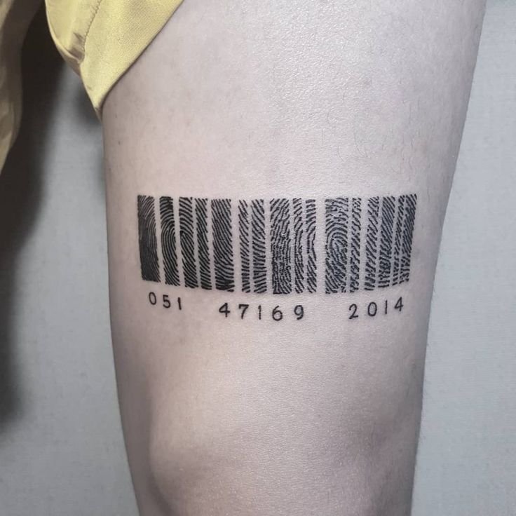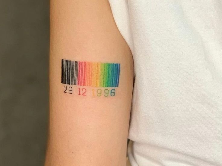 - Набивая тату штрихкода, внизу полос часто изображают важную для человека дату, к примеру: день его рождения, день рождение ребенка, близкого человека, дату свадьбы и так далее.