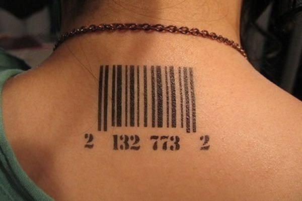 - Эскиз штрихкода так же выступает знаком протеста. Таким образом человек демонстрирует что он против того, чтобы на человека смотрели как на товар. При помощи данной татуировки человек подчеркивает свою индивидуальную натуру, отличие от однотипного общества. Так же, данная татуировка может призывать людей к культуре, ведь если все будут вести себя как-попало, вскоре люди станут предметом торговли.