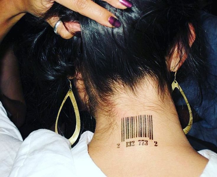 - Тату-эскиз "штрихкод" может говорить о том, что в скором времени наступит такое будущее, где в каждого человека будет внедряться чип, дабы было легко каждого отслеживать и порабощать.